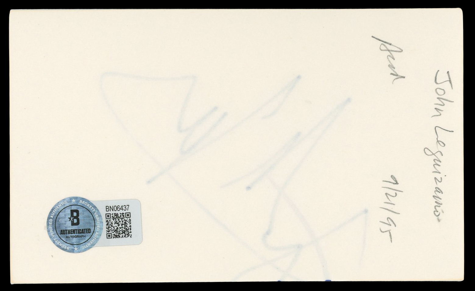 This Autographed 3x5 Index Card has been Personally Signed by John Leguizamo of Romeo + Juliet. This item is 100% Authentic to include a hologram by Beckett Authentication Services. This item will come with an affixed Beckett Authentication Services (BAS) authentication sticker, which includes a scannable QR code to verify authenticity. Please note that Beckett no longer provides serial-numbered COA cards, and the attached BAS sticker will serve as the complete authentication for this item. The authenticity can be verified on Beckett Authentication Services website.