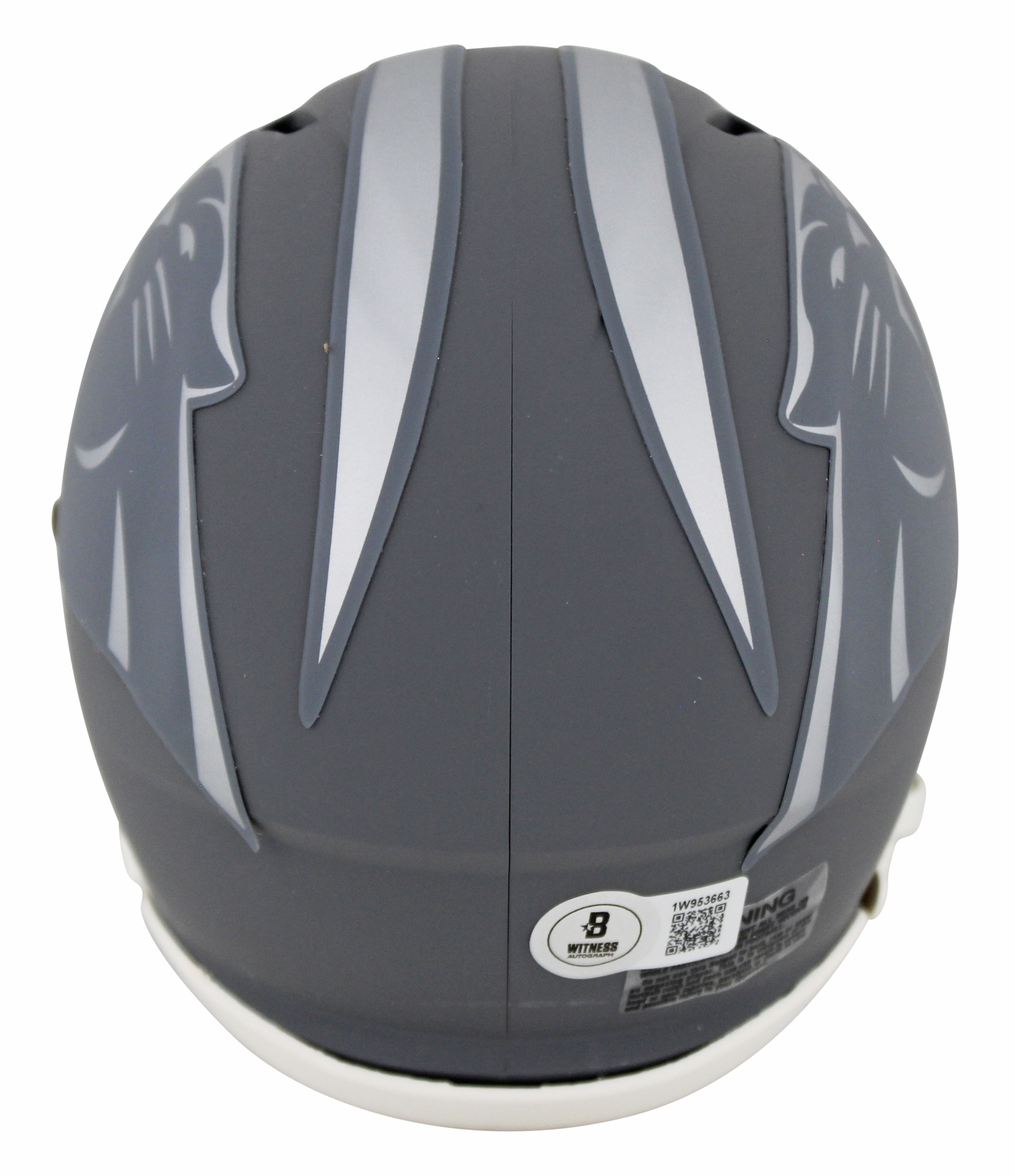 This Autographed Alternate Slate Speed Mini Helmet W/ Uv Mirrored Back Acrylic Display Case has been Personally Signed by Julius Peppers of the Carolina Panthers. This item is 100% Authentic to include a hologram by Beckett Authentication Services. This item will come with an affixed Beckett Authentication Services (BAS) authentication sticker, which includes a scannable QR code to verify authenticity. Please note that Beckett no longer provides serial-numbered COA cards, and the attached BAS sticker will serve as the complete authentication for this item. This is a BAS Witnessed Protection Program item which means a Beckett Authentication Service representative was present when this item was being signed. We conducted an autograph signing with Julius Peppers where multiples of the same item were signed. While the photographs are representative of this item, the size, placement and strength of the signature may vary. Each item is hand signed, therefore, each autograph is unique. This item can be verified through BAS Witnessed.