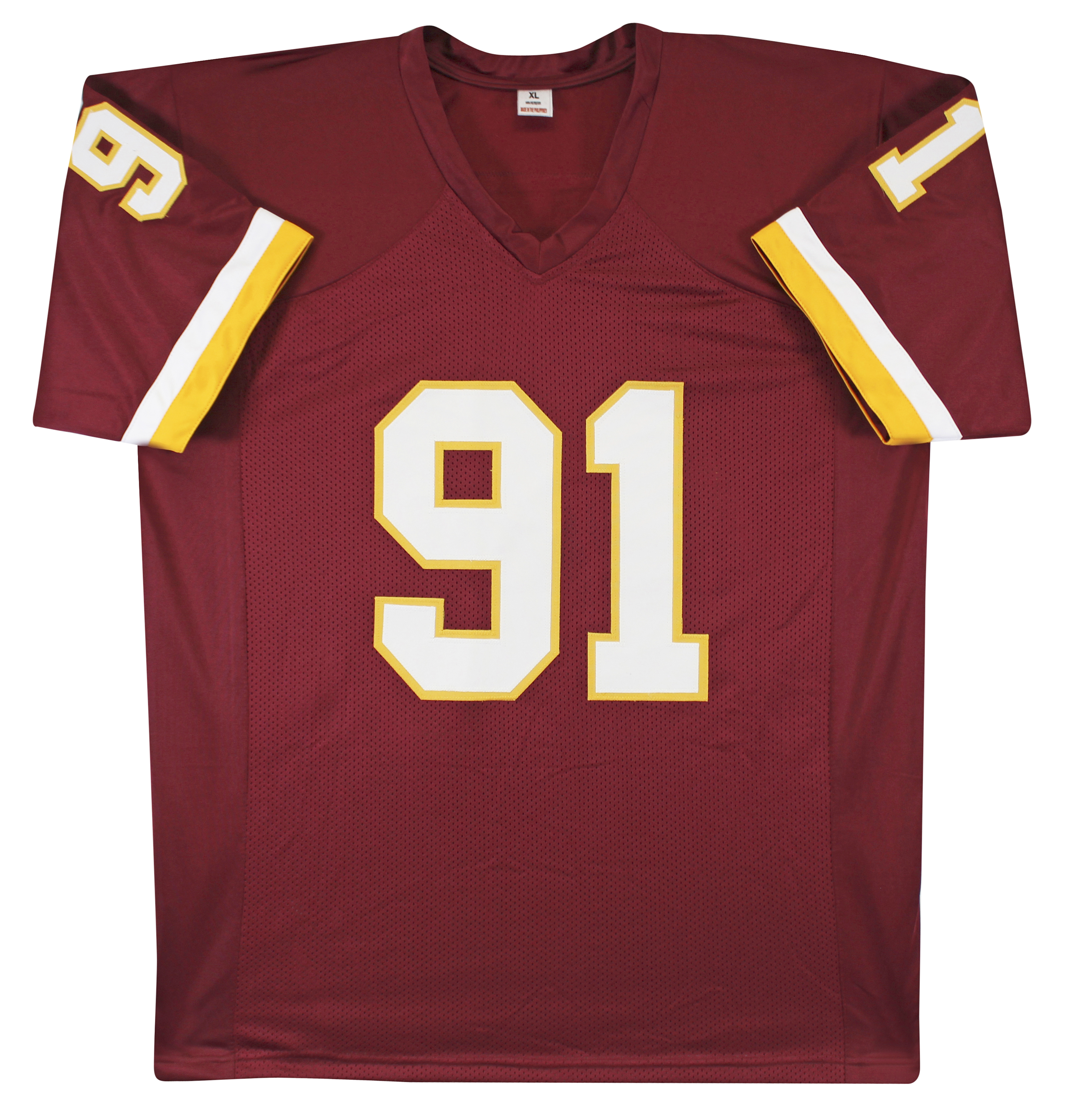 This Autographed Maroon Pro Style Jersey has been Personally Signed by Ryan Kerrigan of the Washington Commanders. This item is 100% Authentic to include a hologram by Beckett Authentication Services. This item will come with an affixed Beckett Authentication Services (BAS) authentication sticker, which includes a scannable QR code to verify authenticity. Please note that Beckett no longer provides serial-numbered COA cards, and the attached BAS sticker will serve as the complete authentication for this item. This is a BAS Witnessed Protection Program item which means a Beckett Authentication Service representative was present when this item was being signed. We conducted an autograph signing with Ryan Kerrigan where multiples of the same item were signed. While the photographs are representative of this item, the size, placement and strength of the signature may vary. Each item is hand signed, therefore, each autograph is unique. This item can be verified through BAS Witnessed. This is a X-Large sized, non-branded, custom-stitched Jersey.