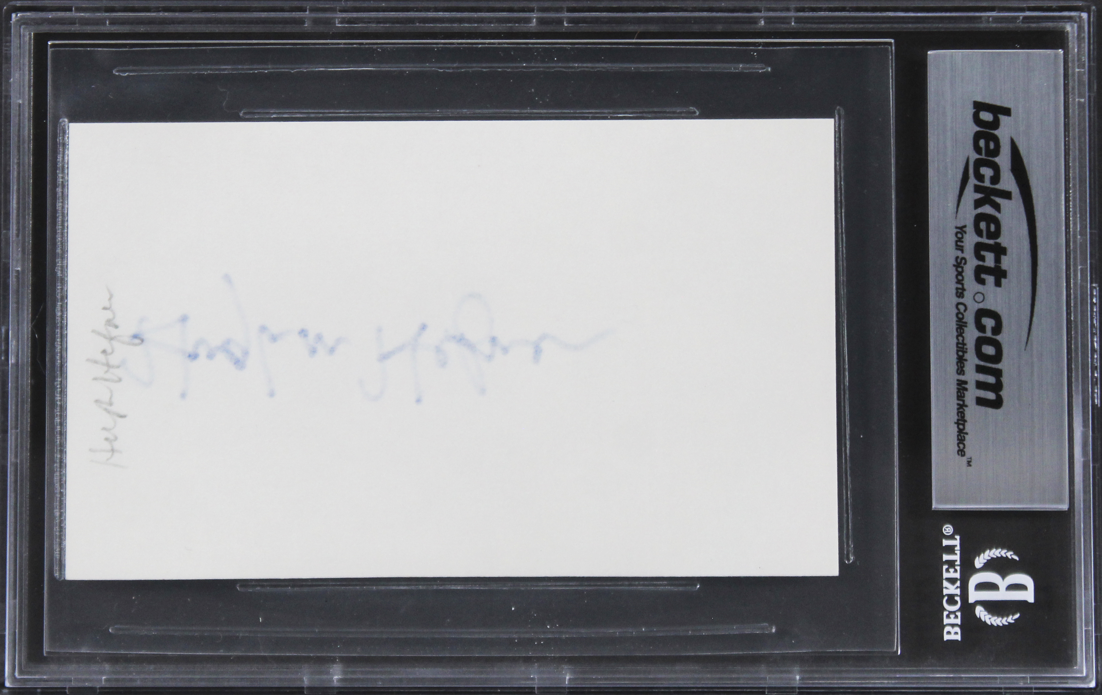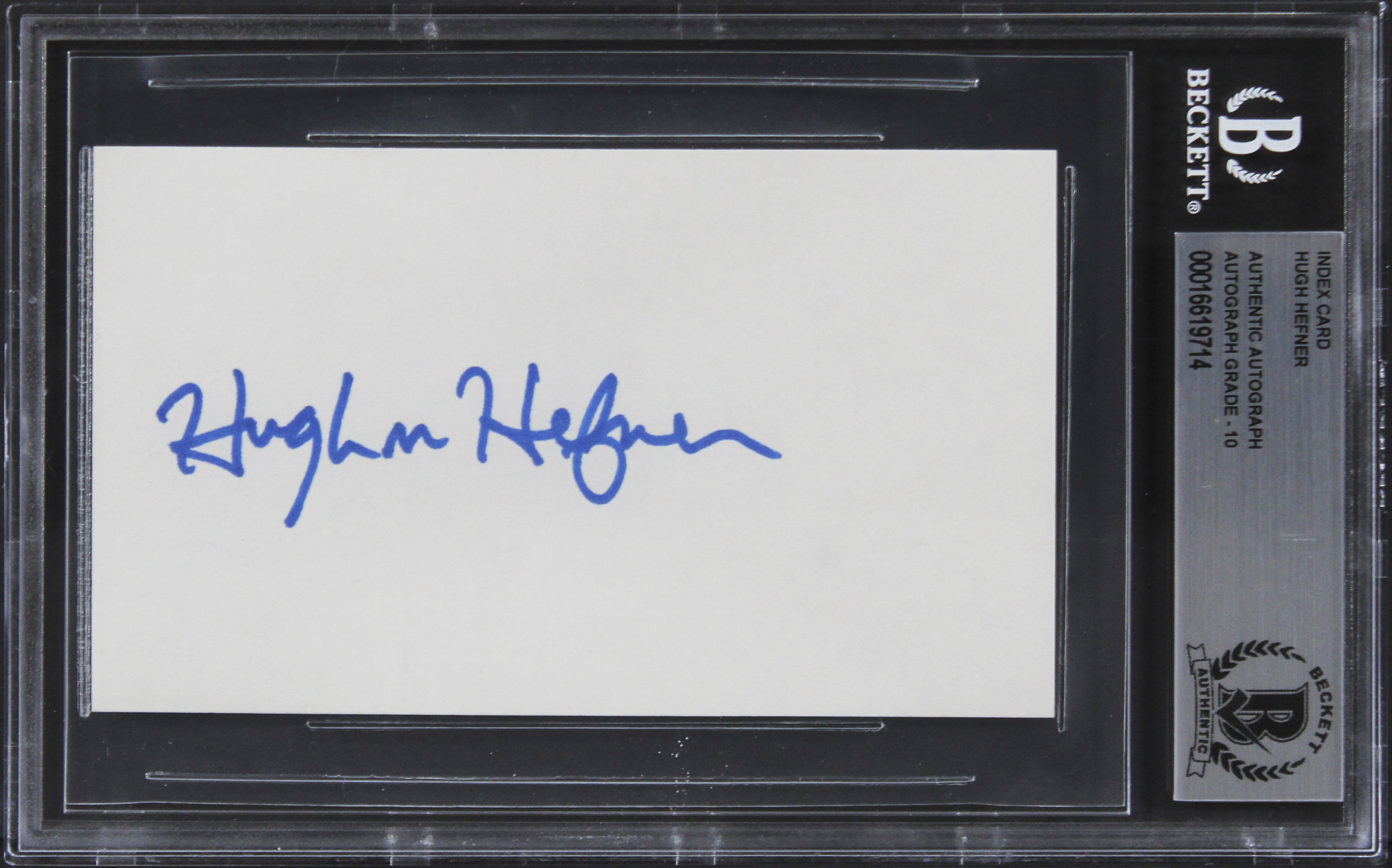 This Autographed Auto Graded Gem Mint 10! 3x5 Index Card has been Personally Signed by Hugh Hefner of Playboy. This item is 100% Authentic, it comes slabbed and authenticated by Beckett Authentication Services. The authenticity can be verified on Beckett Authentication Services website.