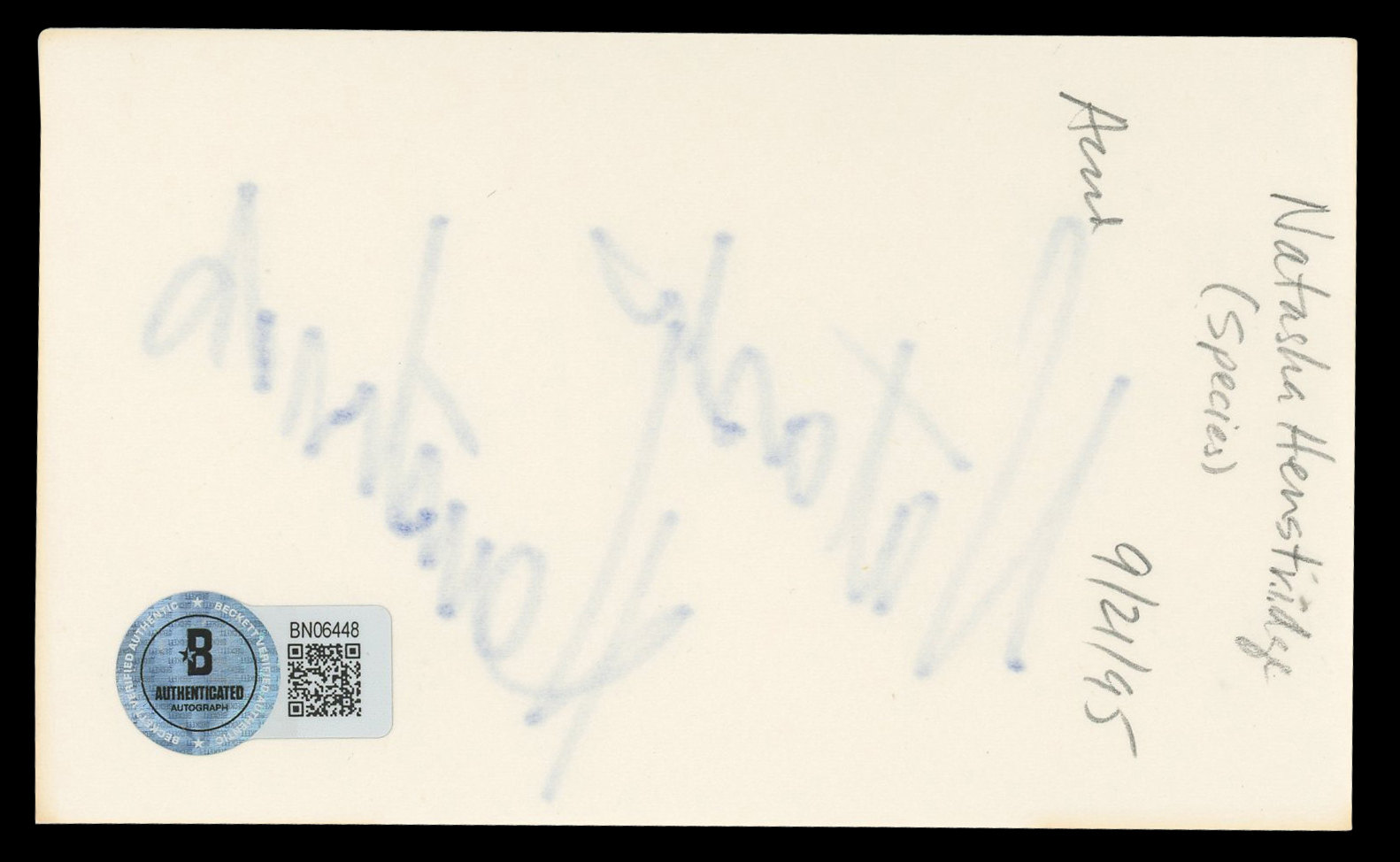 Natasha Henstridge Species Authentic Signed 3x5 Index Card BAS #BN06448