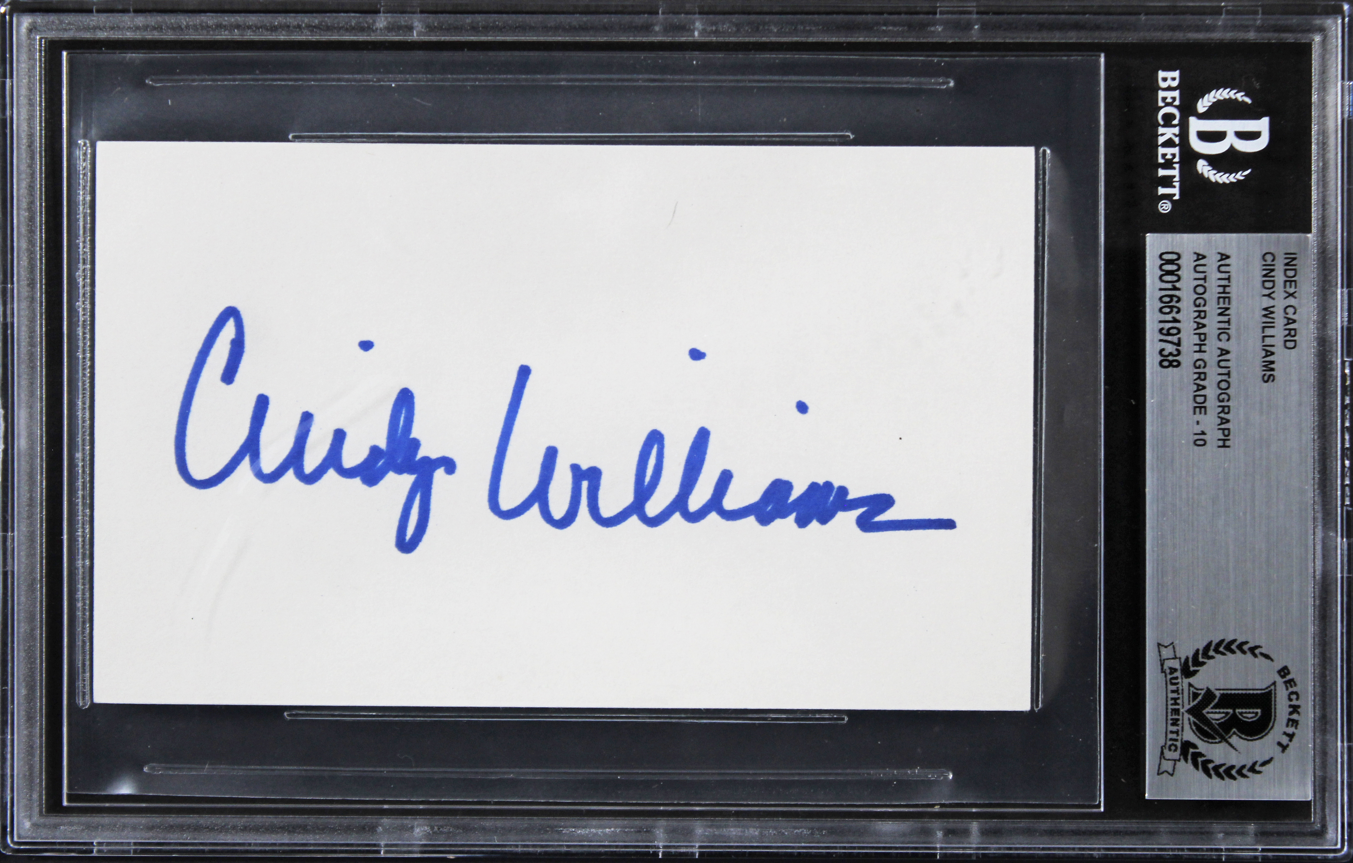 This Autographed Auto Graded Gem Mint 10! 3x5 Index Card has been Personally Signed by Cindy Williams of Happy Days. This item is 100% Authentic, it comes slabbed and authenticated by Beckett Authentication Services. We have multiples of this same item. While the photographs are representative of this item, the size and placement of the signature may vary. Each item is hand signed, therefore, each autograph is unique.