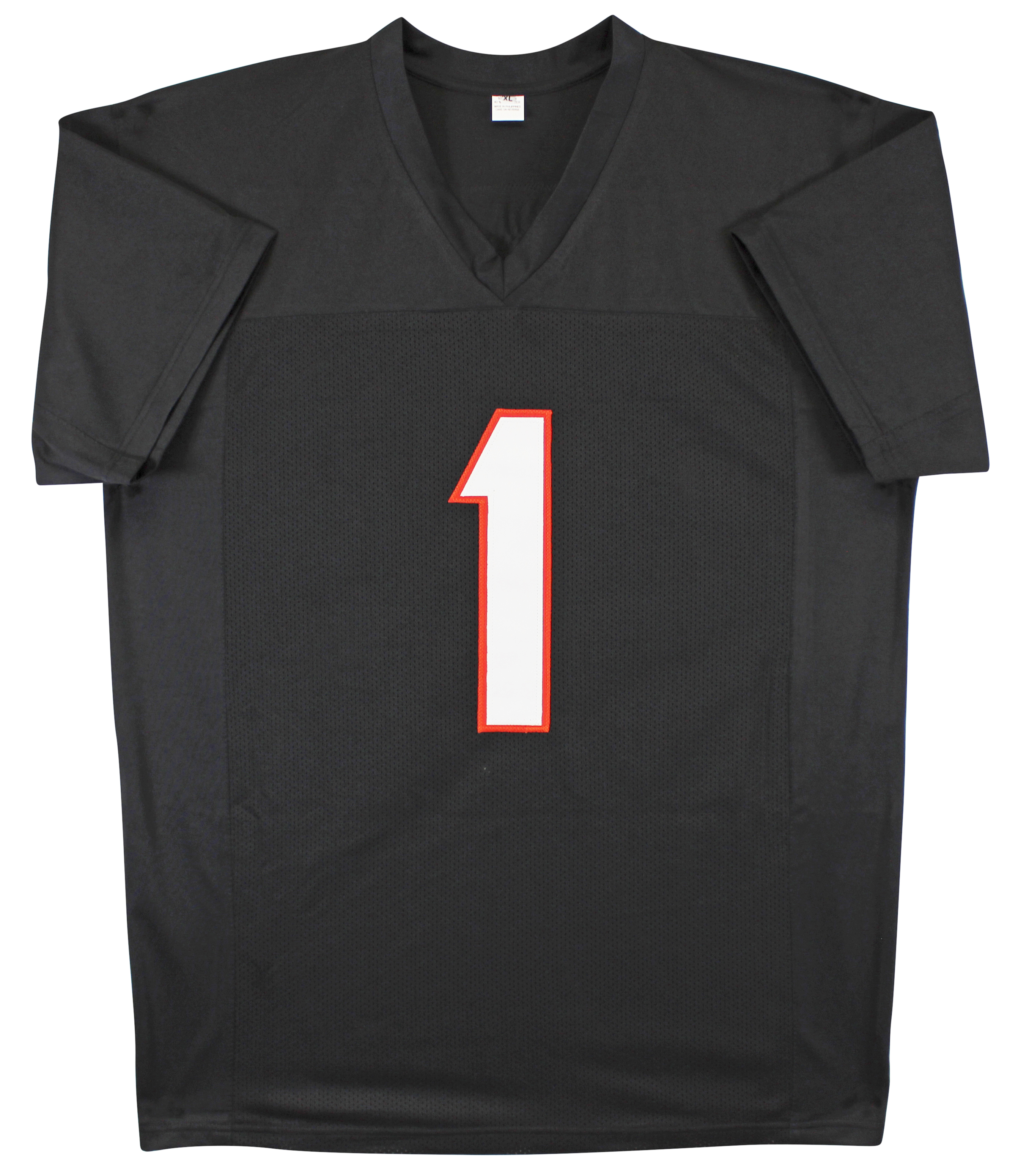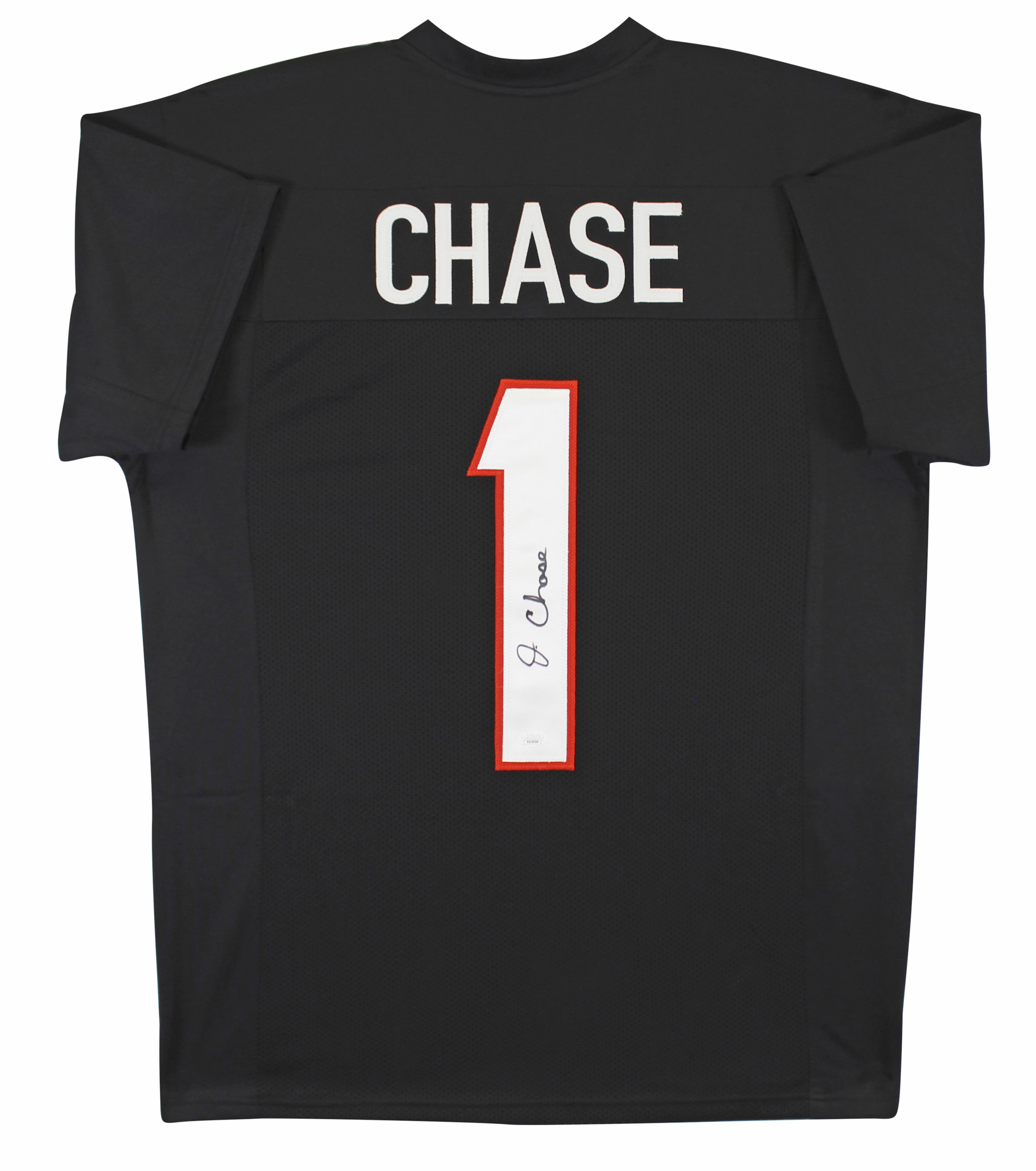 This Autographed Black Pro Style Jersey has been Personally Signed by Ja'Marr Chase of the Cincinnati Bengals. This item is 100% Authentic to include a Certificate of Authenticity (COA) / hologram by JSA. We conducted an autograph signing with Ja'Marr Chase where multiples of the same item were signed. While the photographs are representative of this item, the size, placement and strength of the signature may vary. Each item is hand signed, therefore, each autograph is unique. This item can be verified through JSA. This is a X-Large sized, non-branded, custom-stitched Jersey.