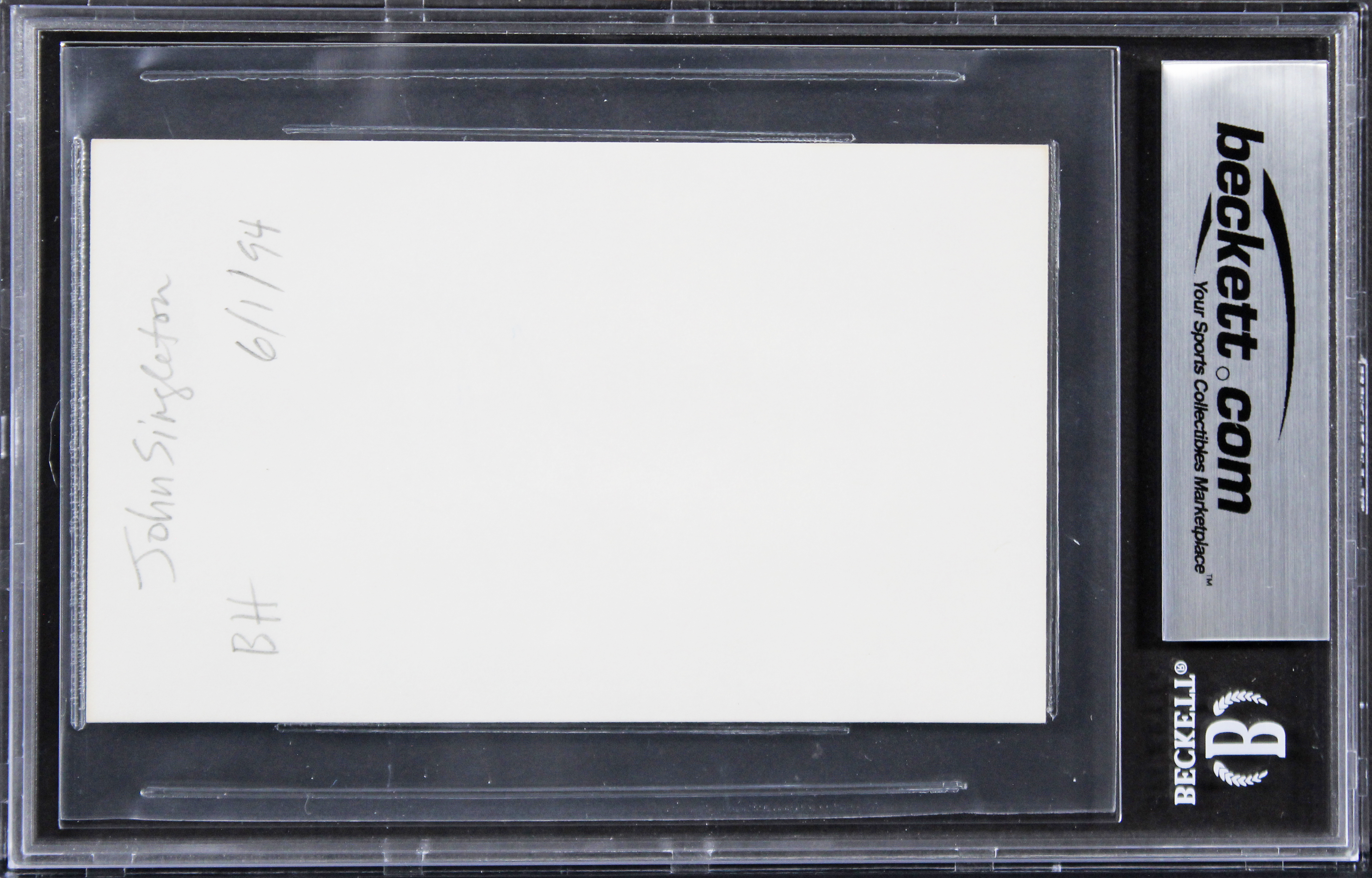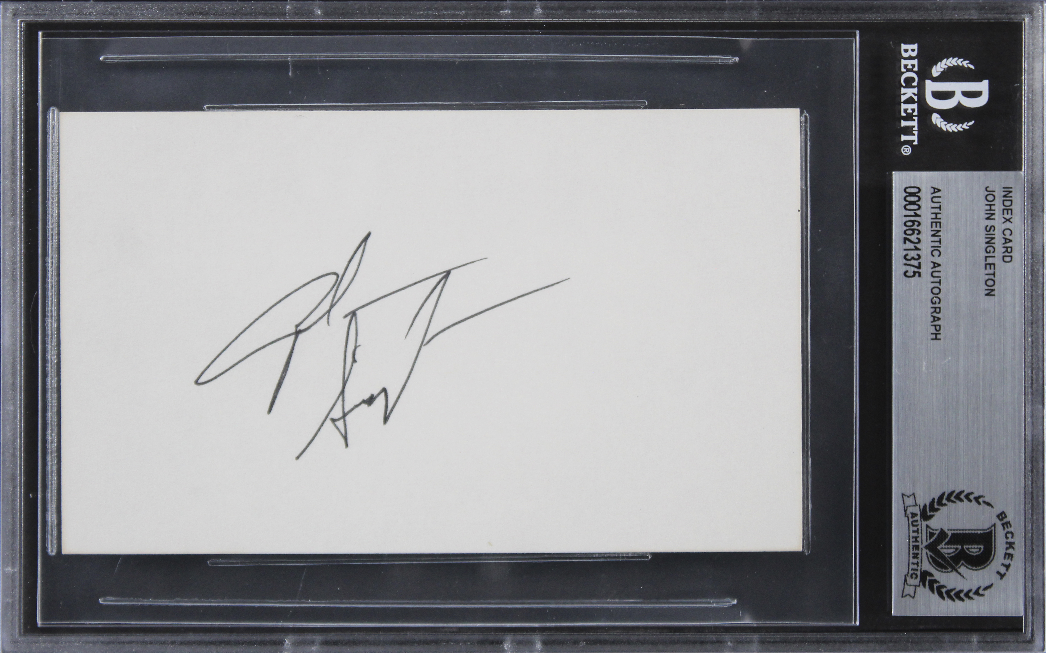 This Autographed 3x5 Index Card has been Personally Signed by John Singleton of Boyz N The Hood. This item is 100% Authentic, it comes slabbed and authenticated by Beckett Authentication Services. We have multiples of this same item. While the photographs are representative of this item, the size, placement and strength of the signature may vary. Each item is hand signed, therefore, each autograph is unique.