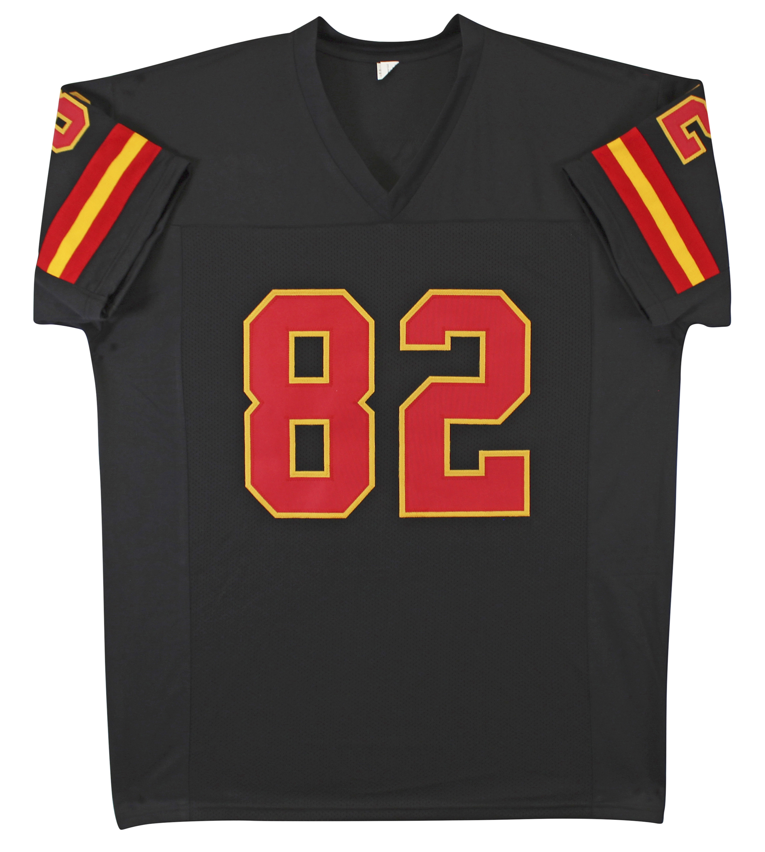 This Autographed Black Pro Style Jersey has been Personally Signed by Dwayne Bowe of the Kansas City Chiefs. This item is 100% Authentic to include a hologram by Beckett Authentication Services. This item will come with an affixed Beckett Authentication Services (BAS) authentication sticker, which includes a scannable QR code to verify authenticity. Please note that Beckett no longer provides serial-numbered COA cards, and the attached BAS sticker will serve as the complete authentication for this item. This is a BAS Witnessed Protection Program item which means a Beckett Authentication Service representative was present when this item was being signed. We conducted an autograph signing with Dwayne Bowe where multiples of the same item were signed. While the photographs are representative of this item, the size, placement and strength of the signature may vary. Each item is hand signed, therefore, each autograph is unique. This item can be verified through BAS Witnessed. This is a X-Large sized, non-branded, custom-stitched Jersey.