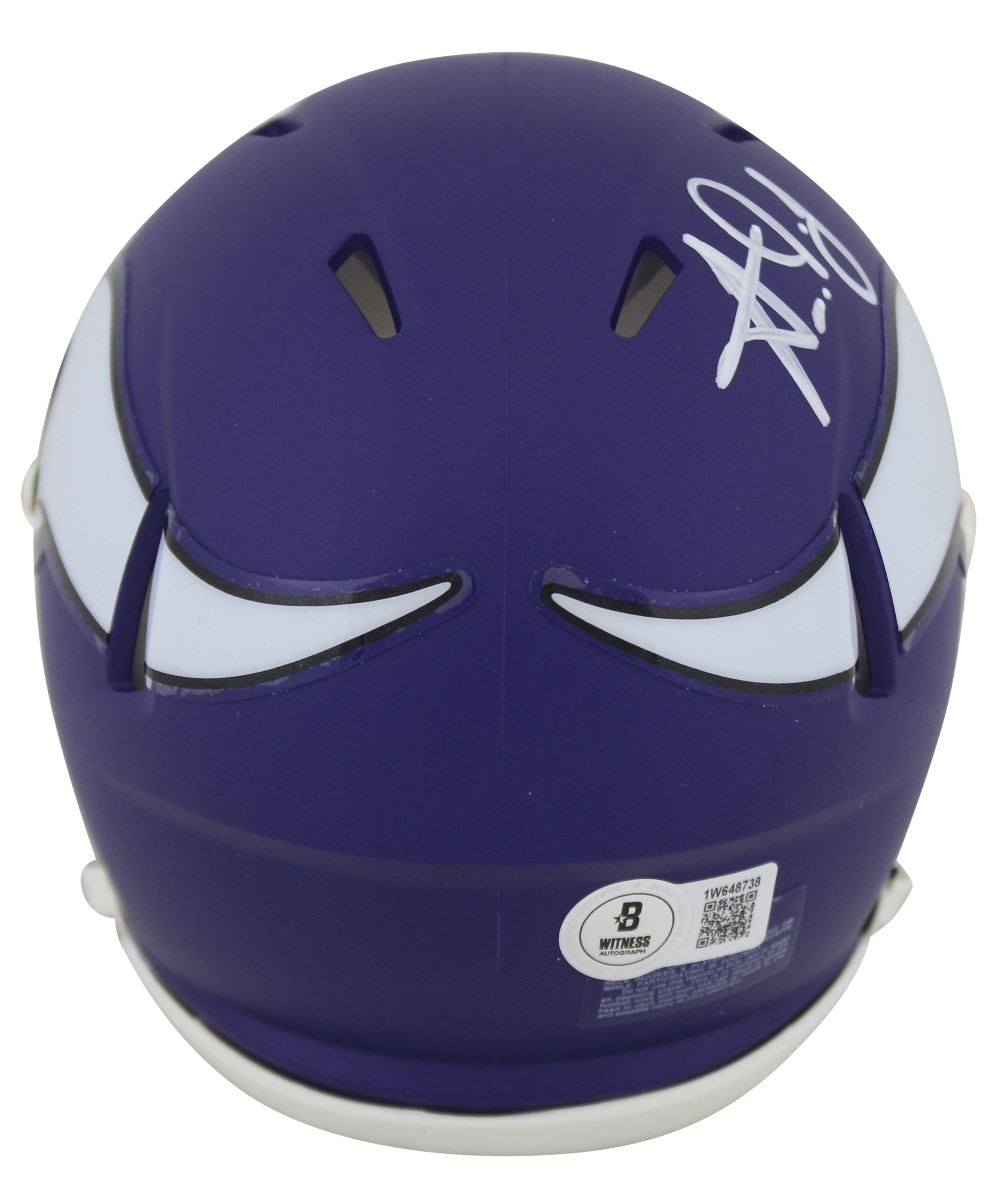 This Autographed Speed Mini Helmet W/ Uv Mirrored Back Acrylic Display Case has been Personally Signed by Aaron Jones of the Minnesota Vikings. This item is 100% Authentic to include a hologram by Beckett Authentication Services. This item will come with an affixed Beckett Authentication Services (BAS) authentication sticker, which includes a scannable QR code to verify authenticity. Please note that Beckett no longer provides serial-numbered COA cards, and the attached BAS sticker will serve as the complete authentication for this item. This is a BAS Witnessed Protection Program item which means a Beckett Authentication Service representative was present when this item was being signed. We conducted an autograph signing with Aaron Jones where multiples of the same item were signed. While the photographs are representative of this item, the size, placement and strength of the signature may vary. Each item is hand signed, therefore, each autograph is unique. This item can be verified through BAS Witnessed.