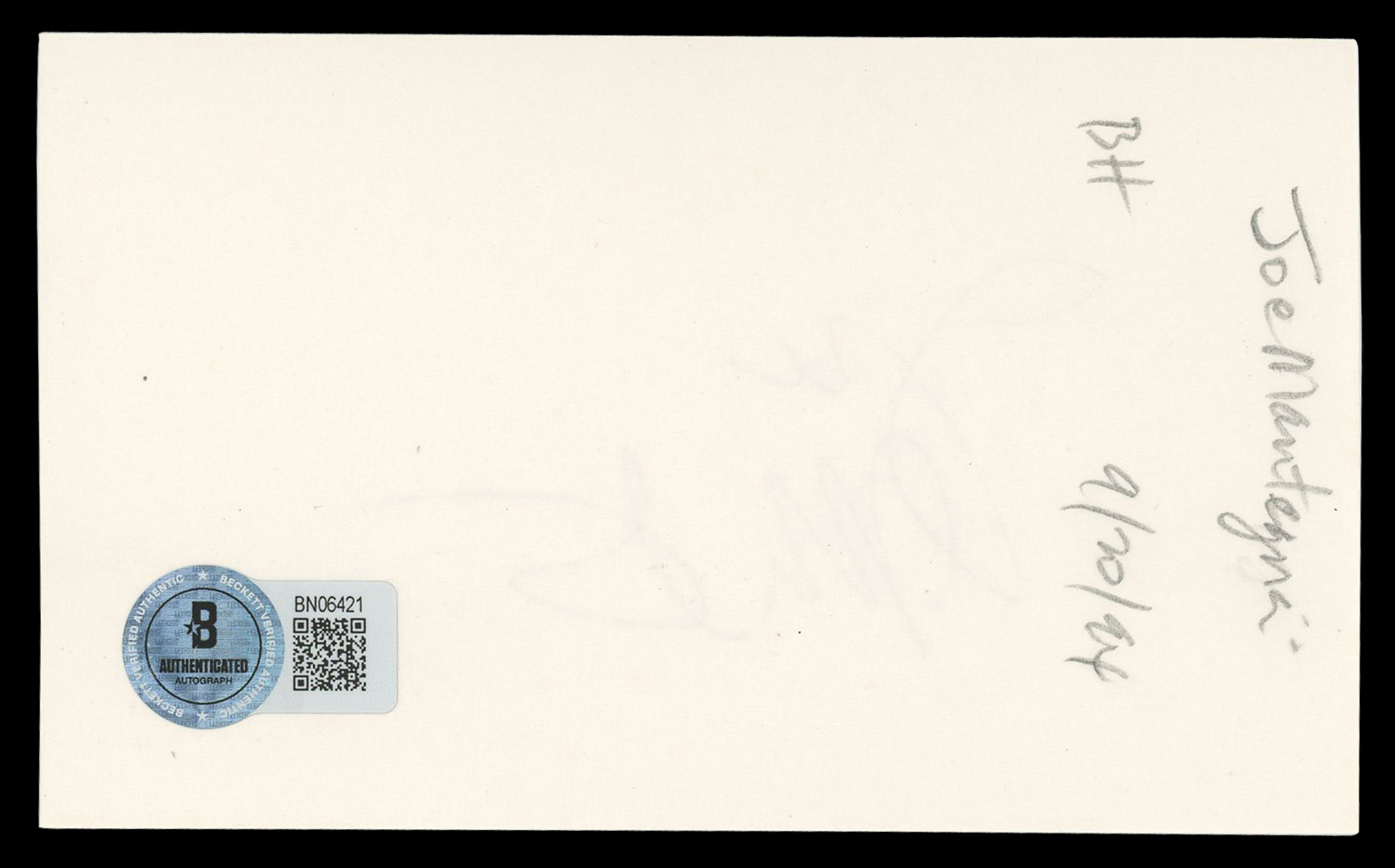 This Autographed 3x5 Index Card has been Personally Signed by Joe Mantegna of Criminal Minds. This item is 100% Authentic to include a hologram by Beckett Authentication Services. This item will come with an affixed Beckett Authentication Services (BAS) authentication sticker, which includes a scannable QR code to verify authenticity. Please note that Beckett no longer provides serial-numbered COA cards, and the attached BAS sticker will serve as the complete authentication for this item. The authenticity can be verified on Beckett Authentication Services website.