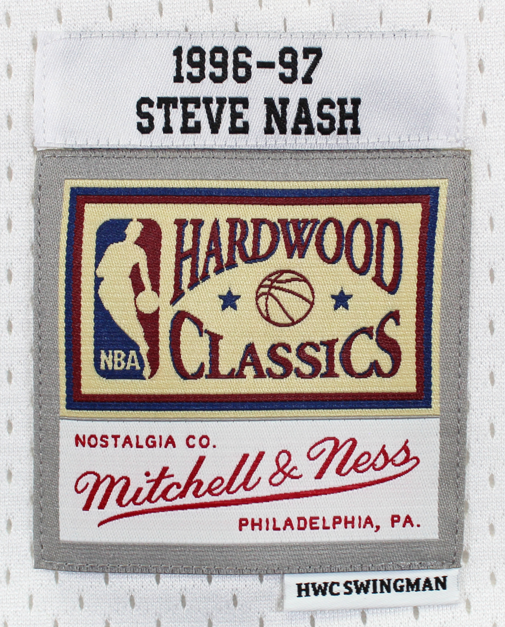 This Autographed White Mitchell & Ness 1996-97 Hardwood Classics Swingman Jersey has been Personally Signed by Steve Nash of the Phoenix Suns. This item is 100% Authentic to include a hologram by Beckett Authentication Services. This item will come with an affixed Beckett Authentication Services (BAS) authentication sticker, which includes a scannable QR code to verify authenticity. Please note that Beckett no longer provides serial-numbered COA cards, and the attached BAS sticker will serve as the complete authentication for this item. This is a BAS Witnessed Protection Program item which means a Beckett Authentication Service representative was present when this item was being signed. We conducted an autograph signing with Steve Nash where multiples of the same item were signed. While the photographs are representative of this item, the size, placement and strength of the signature may vary. Each item is hand signed, therefore, each autograph is unique. This item can be verified through BAS Witnessed. This is a X-Large sized Jersey.