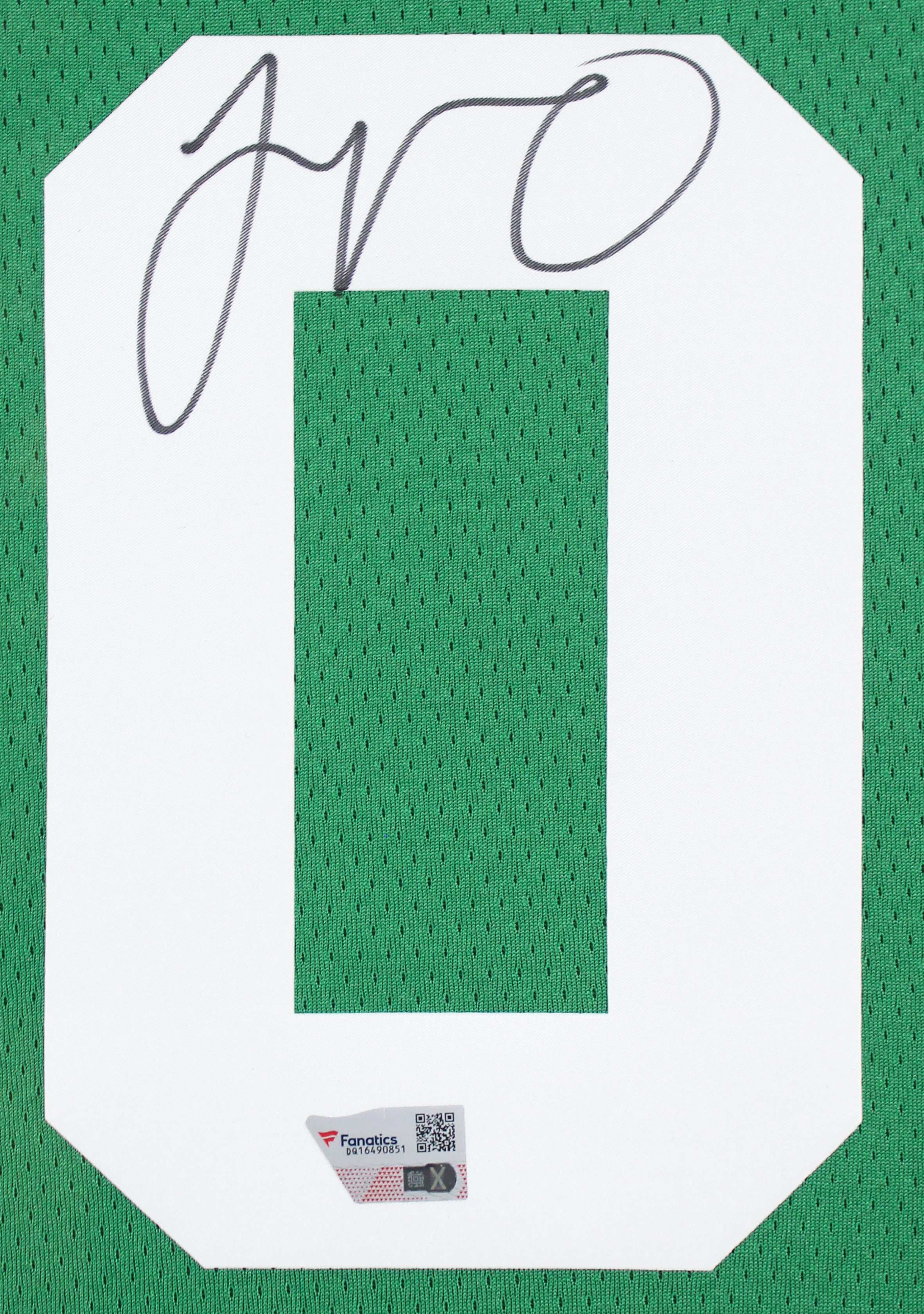 This Autographed Green Nike Swingman Framed Jersey has been Personally Signed by Jayson Tatum of the Boston Celtics. This item is 100% Authentic to includes a numbered hologram by Fanatics. We have multiples of this same item. While the photographs are representative of this item, the size, placement and strength of the signature may vary. Each item is hand signed, therefore, each autograph is unique. This jersey will be framed to order, it will take 3-4 days from purchase date for it to ship.