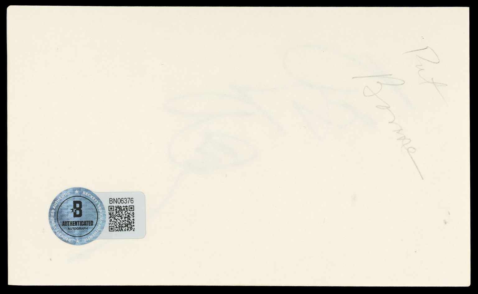 This Autographed 3x5 Index Card has been Personally Signed by Pat Boone of Journey to the Center of the Earth. This item is 100% Authentic to include a hologram by Beckett Authentication Services. This item will come with an affixed Beckett Authentication Services (BAS) authentication sticker, which includes a scannable QR code to verify authenticity. Please note that Beckett no longer provides serial-numbered COA cards, and the attached BAS sticker will serve as the complete authentication for this item. The authenticity can be verified on Beckett Authentication Services website.