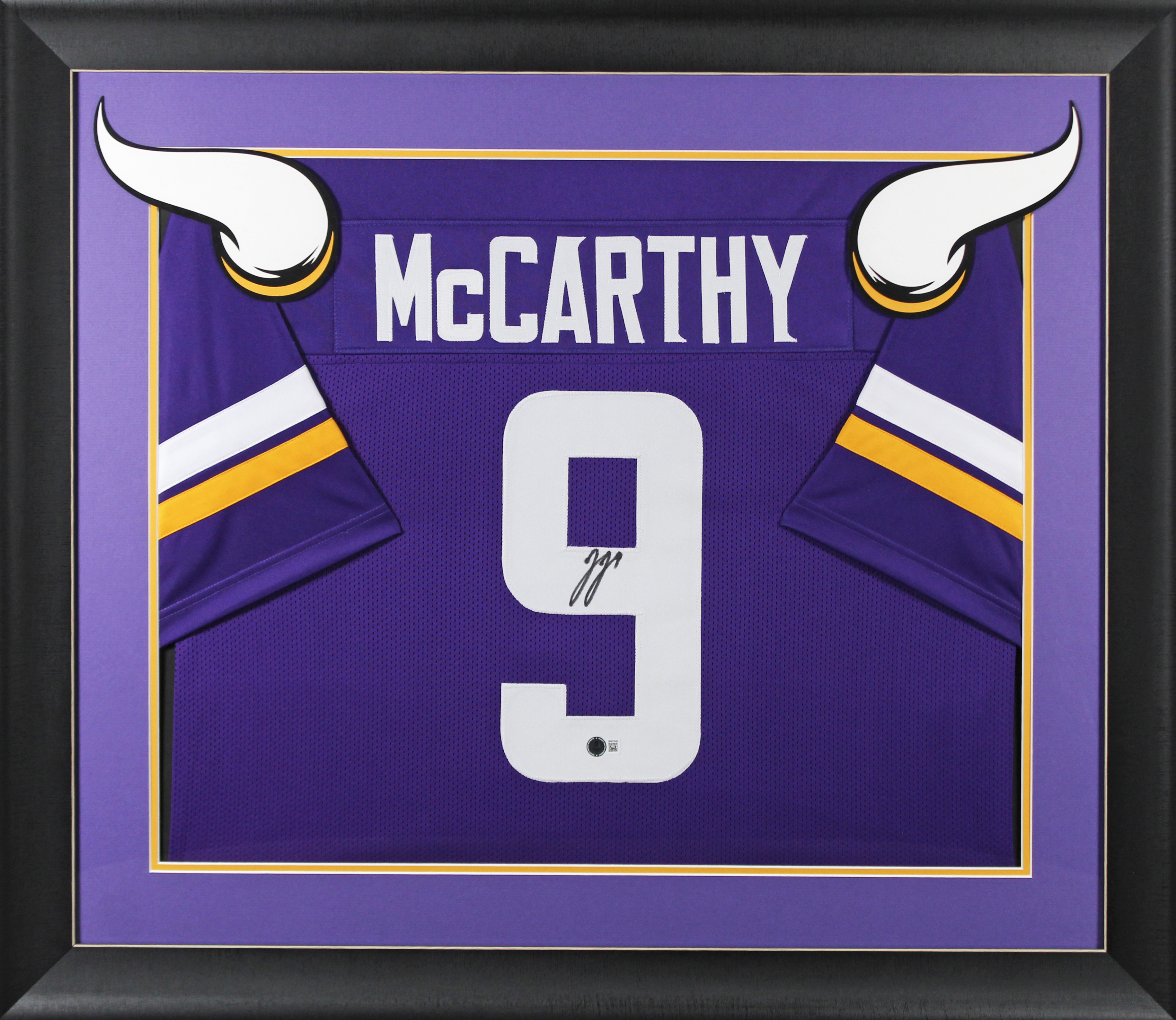 J.J. McCarthy Authentic Signed Purple Pro Style Framed Jersey BAS Witnessed