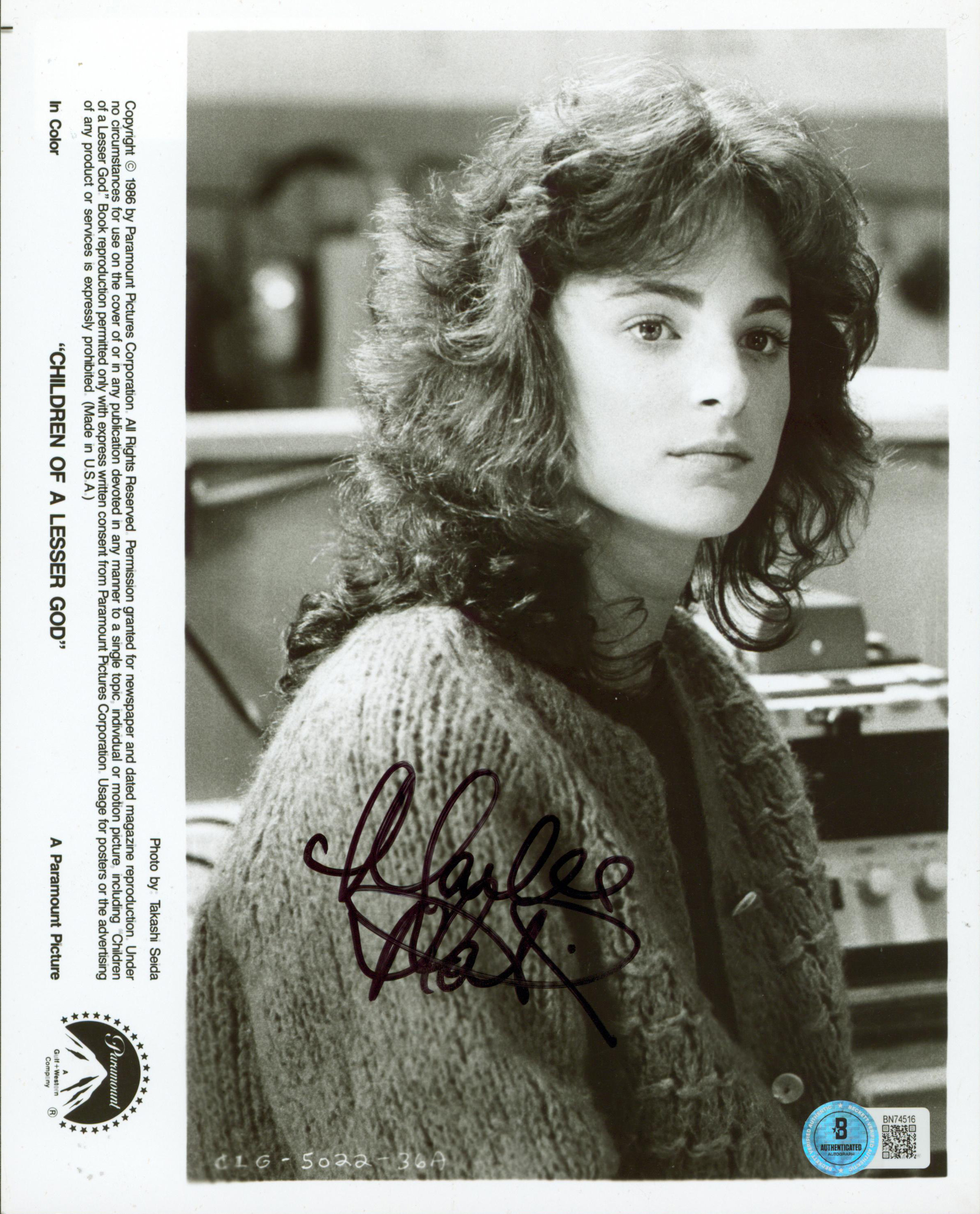 This Autographed 8x10 Photo has been Personally Signed by Marlee Matlin of Children of a Lesser God. This item is 100% Authentic to include a hologram by Beckett Authentication Services. This item will come with an affixed Beckett Authentication Services (BAS) authentication sticker, which includes a scannable QR code to verify authenticity. Please note that Beckett no longer provides serial-numbered COA cards, and the attached BAS sticker will serve as the complete authentication for this item. The authenticity can be verified on Beckett Authentication Services website.