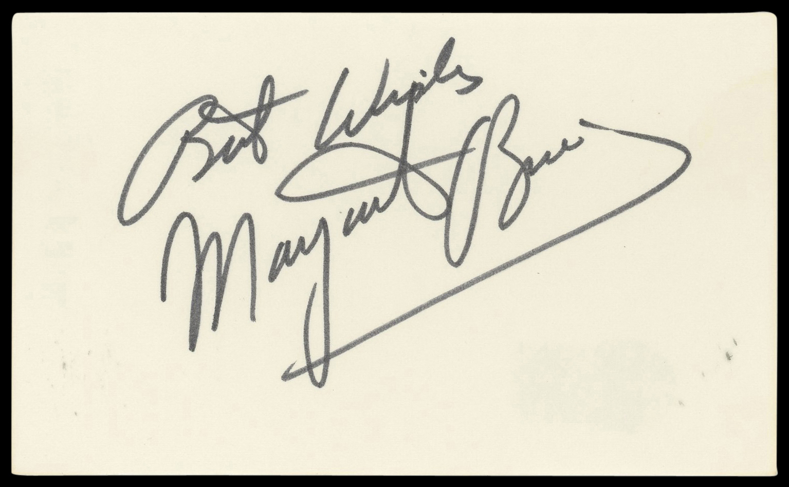 This Autographed 3x5 Index Card with the inscription of "Best Wishes" has been Personally Signed by Margaret O'Brien of Meet Me in St. Louis. This item is 100% Authentic to include a hologram by Beckett Authentication Services. This item will come with an affixed Beckett Authentication Services (BAS) authentication sticker, which includes a scannable QR code to verify authenticity. Please note that Beckett no longer provides serial-numbered COA cards, and the attached BAS sticker will serve as the complete authentication for this item. The authenticity can be verified on Beckett Authentication Services website.