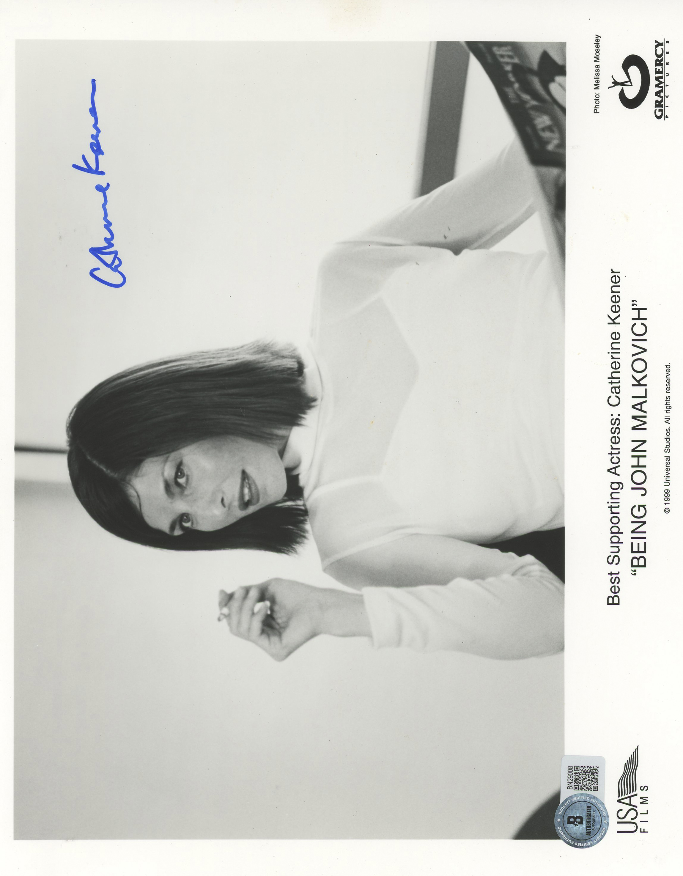 This Autographed 8x10 Photo has been Personally Signed by Catherine Keener of Being John Malkovich. This item is 100% Authentic to include a hologram by Beckett Authentication Services. This item will come with an affixed Beckett Authentication Services (BAS) authentication sticker, which includes a scannable QR code to verify authenticity. Please note that Beckett no longer provides serial-numbered COA cards, and the attached BAS sticker will serve as the complete authentication for this item. The authenticity can be verified on Beckett Authentication Services website.