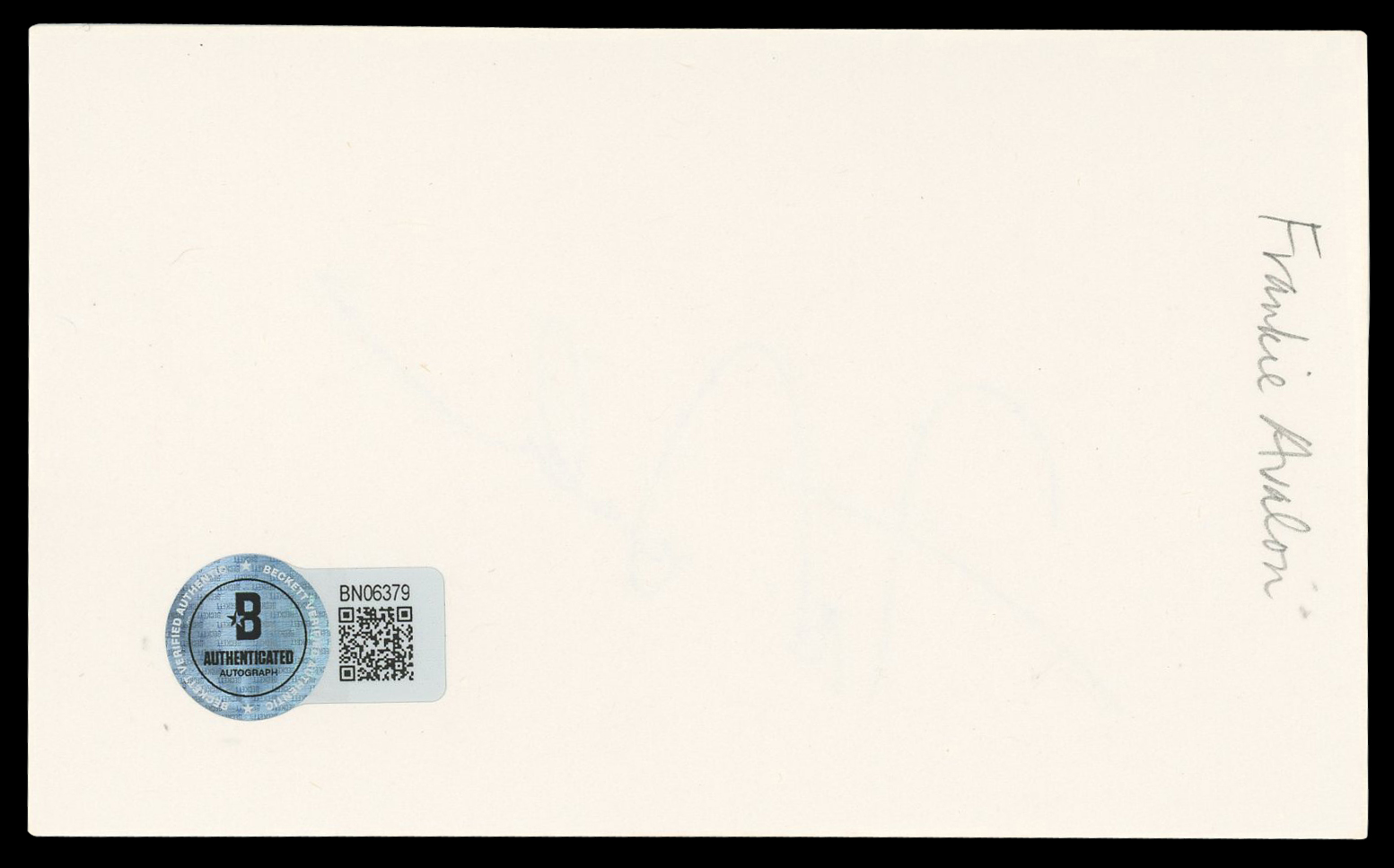 This Autographed 3x5 Index Card has been Personally Signed by Frankie Avalon of Grease. This item is 100% Authentic to include a hologram by Beckett Authentication Services. This item will come with an affixed Beckett Authentication Services (BAS) authentication sticker, which includes a scannable QR code to verify authenticity. Please note that Beckett no longer provides serial-numbered COA cards, and the attached BAS sticker will serve as the complete authentication for this item. The authenticity can be verified on Beckett Authentication Services website.