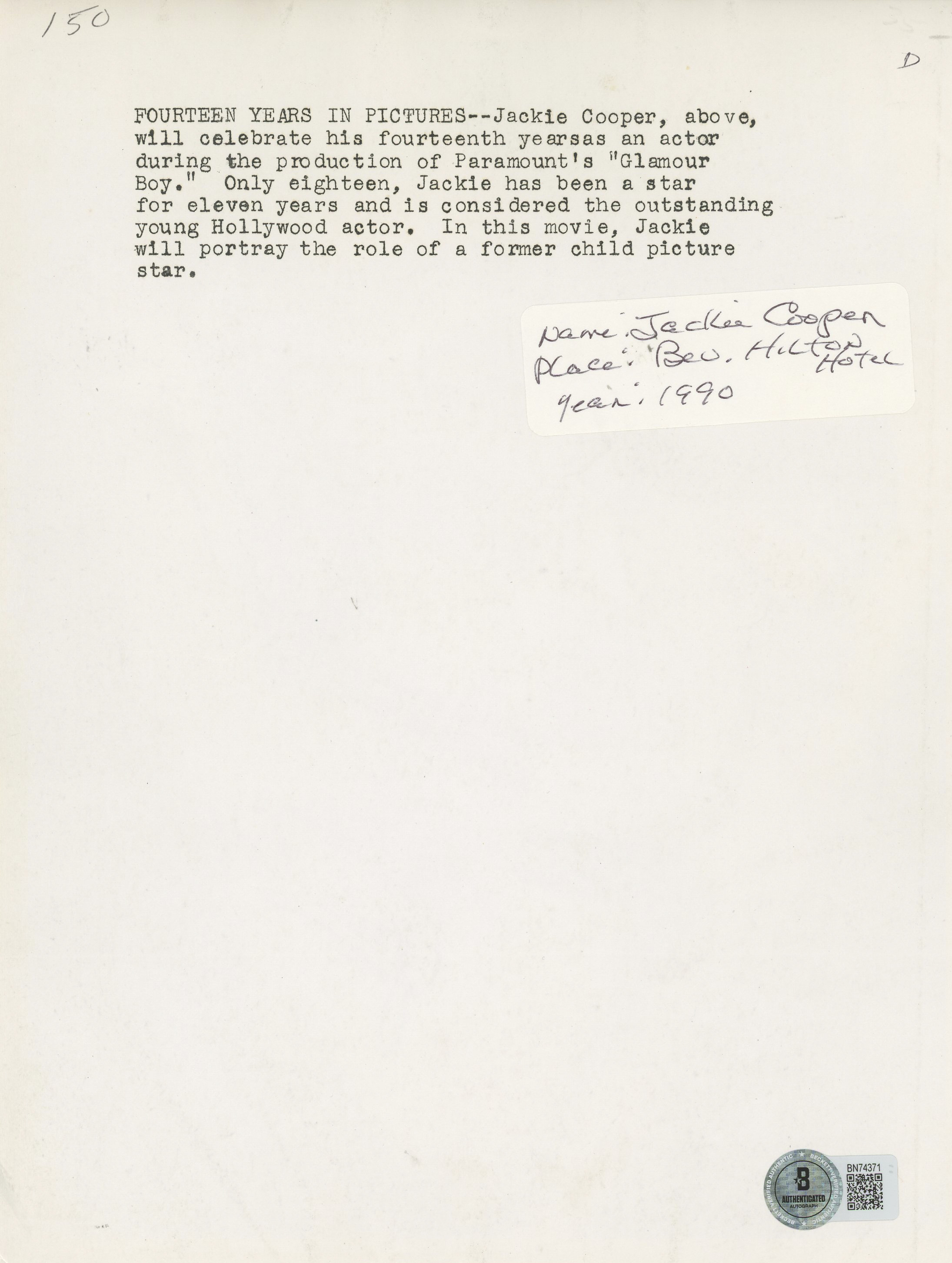 This Autographed 7.5x10 Photo with the inscription of "Best Always" has been Personally Signed by Jackie Cooper of Superman. This item is 100% Authentic to include a hologram by Beckett Authentication Services. This item will come with an affixed Beckett Authentication Services (BAS) authentication sticker, which includes a scannable QR code to verify authenticity. Please note that Beckett no longer provides serial-numbered COA cards, and the attached BAS sticker will serve as the complete authentication for this item. The authenticity can be verified on Beckett Authentication Services website.