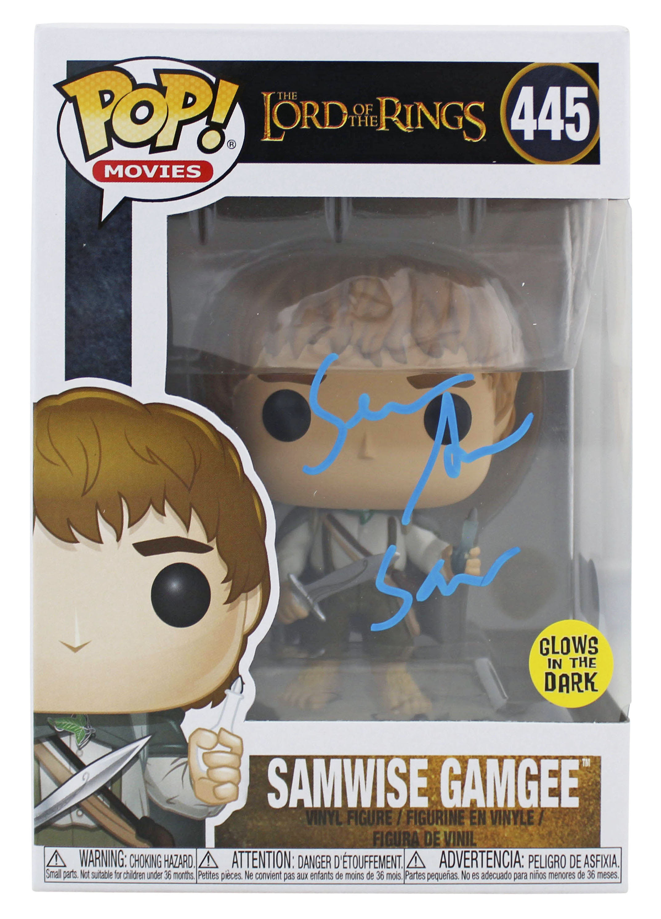 This Autographed w/ Blue Signature Lord Of The Rings Samwise Gamgee #445 Funko Pop Vinyl Figure with the inscription of "Sam" has been Personally Signed by Sean Astin of Lord of the Rings. This item is 100% Authentic to include a hologram by Beckett Authentication Services. This item will come with an affixed Beckett Authentication Services (BAS) authentication sticker, which includes a scannable QR code to verify authenticity. Please note that Beckett no longer provides serial-numbered COA cards, and the attached BAS sticker will serve as the complete authentication for this item. This is a BAS Witnessed Protection Program item which means a Beckett Authentication Service representative was present when this item was being signed. We conducted an autograph signing with Sean Astin where multiples of the same item were signed. While the photographs are representative of this item, the size, placement and strength of the signature may vary. Each item is hand signed, therefore, each autograph is unique. This will be shipped in a Pop Protector, each will have some handling wear from shipment to the signing and back. These would not be considered mint.