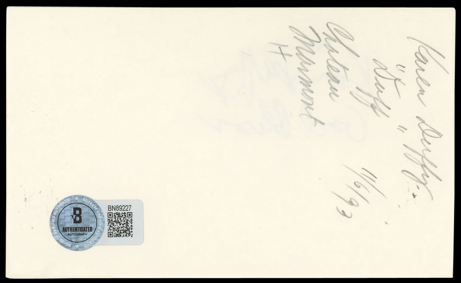 Karen Duffy Dumb and Dumber "God Bless" Signed 3x5 Index Card BAS #BN89227