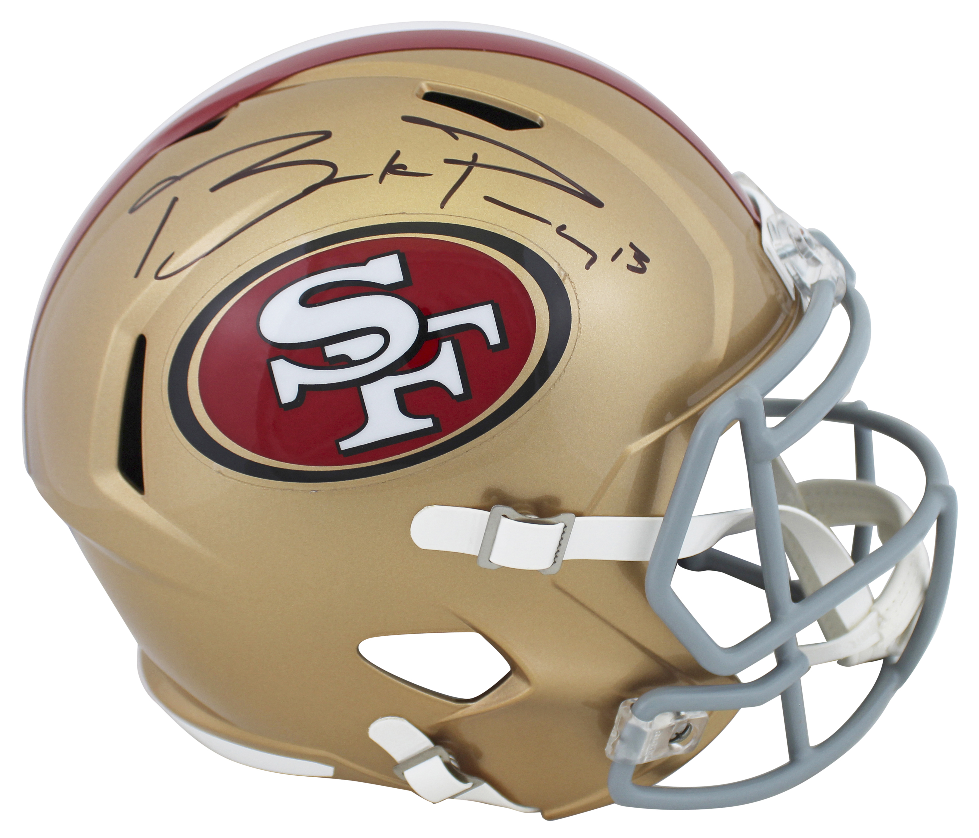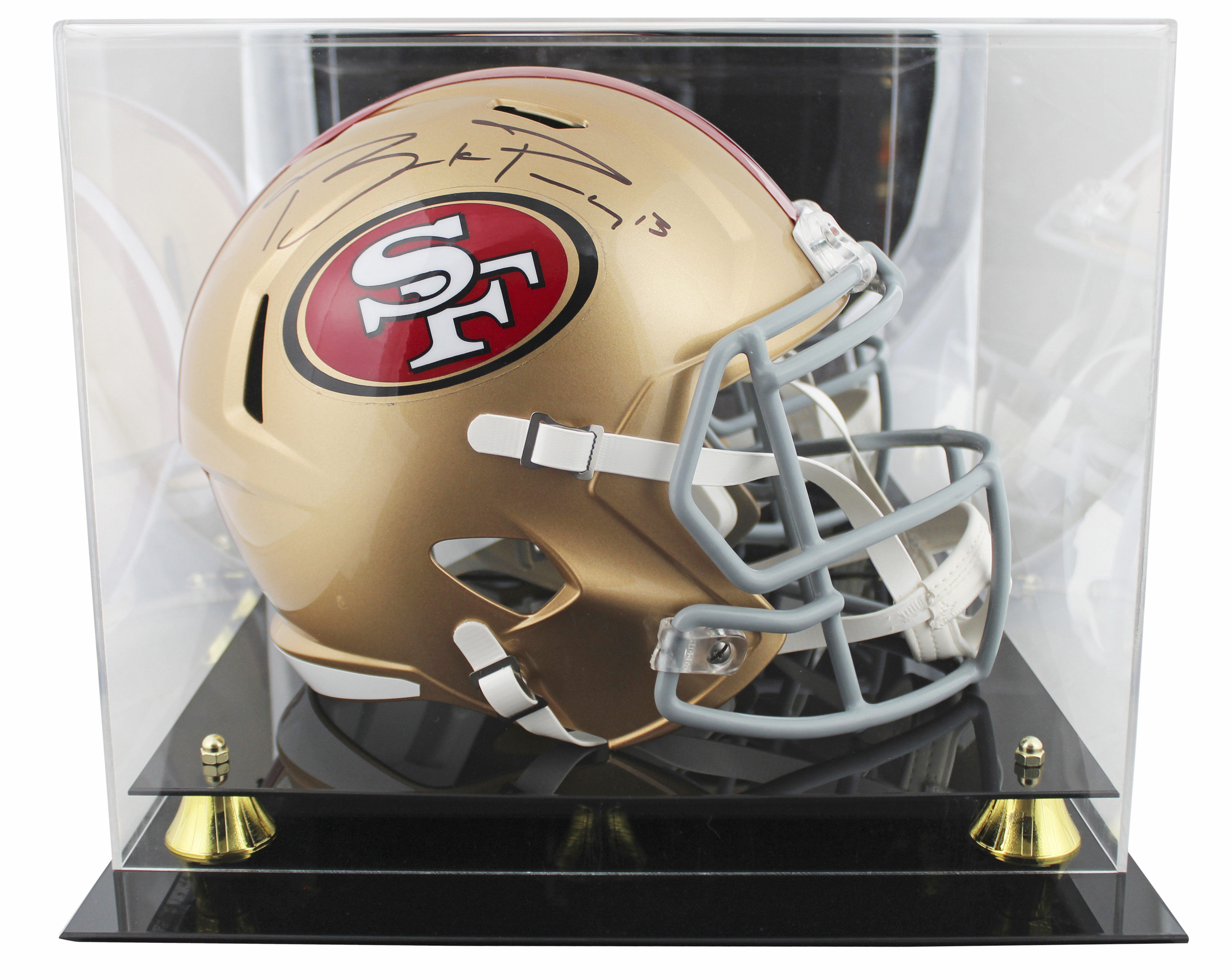 This Autographed Riddell Full Size Speed Rep Helmet W/ Uv Mirrored Back Acrylic Display Case has been Personally Signed by Brock Purdy of the San Francisco 49ers. This item is 100% Authentic to includes a numbered hologram by Fanatics. We conducted an autograph signing with Brock Purdy where multiples of the same item were signed. While the photographs are representative of this item, the size, placement and strength of the signature may vary. Each item is hand signed, therefore, each autograph is unique. This item can be verified through Fanatics.