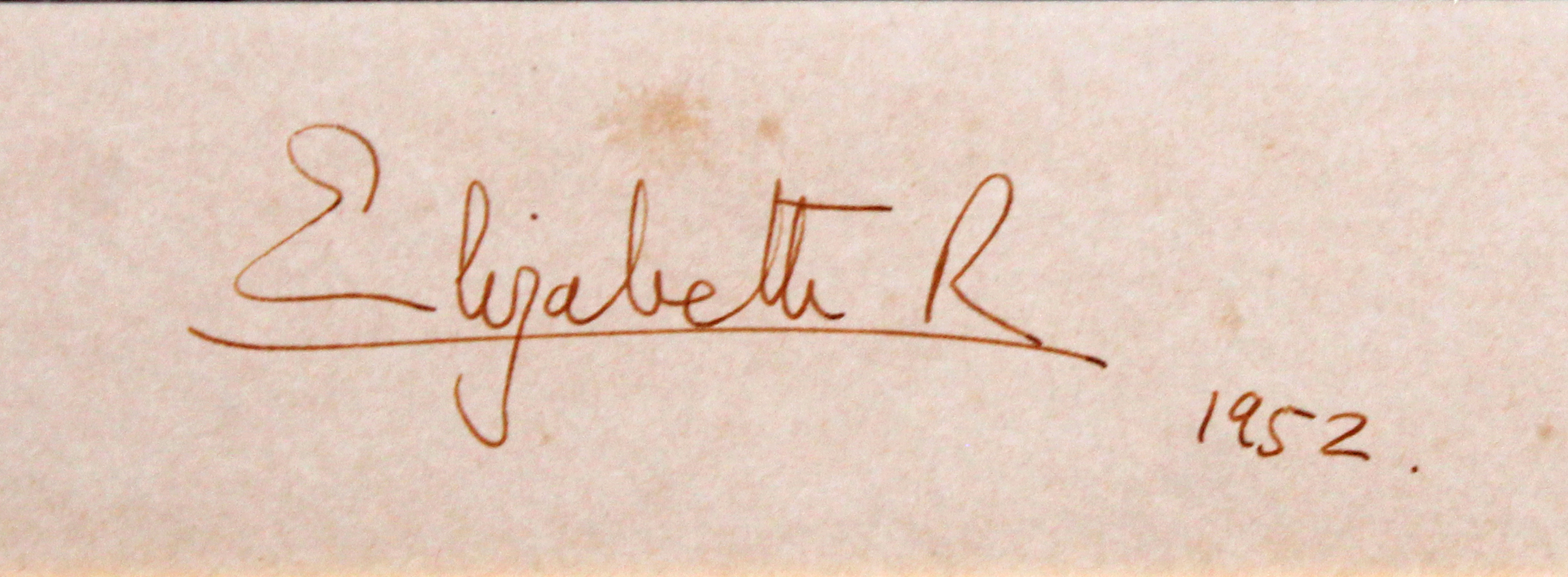 This Autographed 16x20 Framed Photo with the inscription of "1952" has been Personally Signed by Queen Elizabeth II. This item is 100% Authentic to include a Certificate of Authenticity (COA) / hologram by Beckett Authentication Services. The authenticity can be verified on Beckett Authentication Services website. This item has been professionally framed to overall dimensions of approximately 25.25 x 32.25 inches.