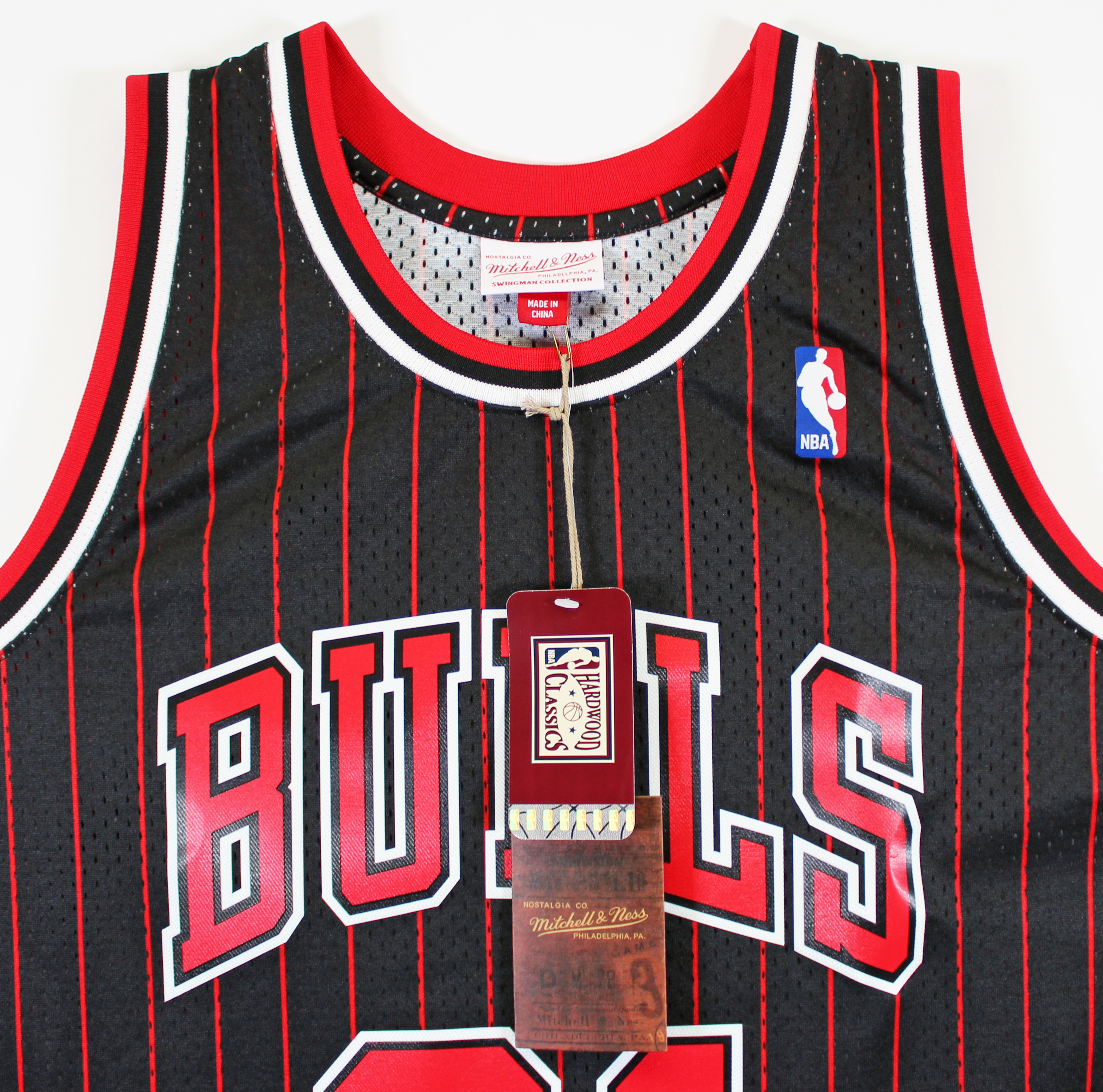 This Autographed w/ Black Signature Black 1995-96 Mitchell & Ness Hardwood Classics Swingman Jersey has been Personally Signed by Dennis Rodman of the Chicago Bulls. This item is 100% Authentic to include a hologram by Beckett Authentication Services. This item will come with an affixed Beckett Authentication Services (BAS) authentication sticker, which includes a scannable QR code to verify authenticity. Please note that Beckett no longer provides serial-numbered COA cards, and the attached BAS sticker will serve as the complete authentication for this item. This is a BAS Witnessed Protection Program item which means a Beckett Authentication Service representative was present when this item was being signed. We conducted an autograph signing with Dennis Rodman where multiples of the same item were signed. While the photographs are representative of this item, the size, placement and strength of the signature may vary. Each item is hand signed, therefore, each autograph is unique. This item can be verified through BAS Witnessed. These jerseys will be size X-Large.