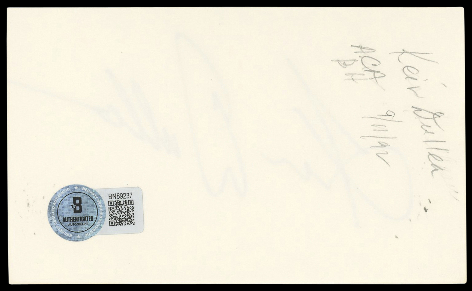 This Autographed 3x5 Index Card has been Personally Signed by Keir Dullea of 2001: A Space Odyssey. This item is 100% Authentic to include a hologram by Beckett Authentication Services. This item will come with an affixed Beckett Authentication Services (BAS) authentication sticker, which includes a scannable QR code to verify authenticity. Please note that Beckett no longer provides serial-numbered COA cards, and the attached BAS sticker will serve as the complete authentication for this item. The authenticity can be verified on Beckett Authentication Services website.
