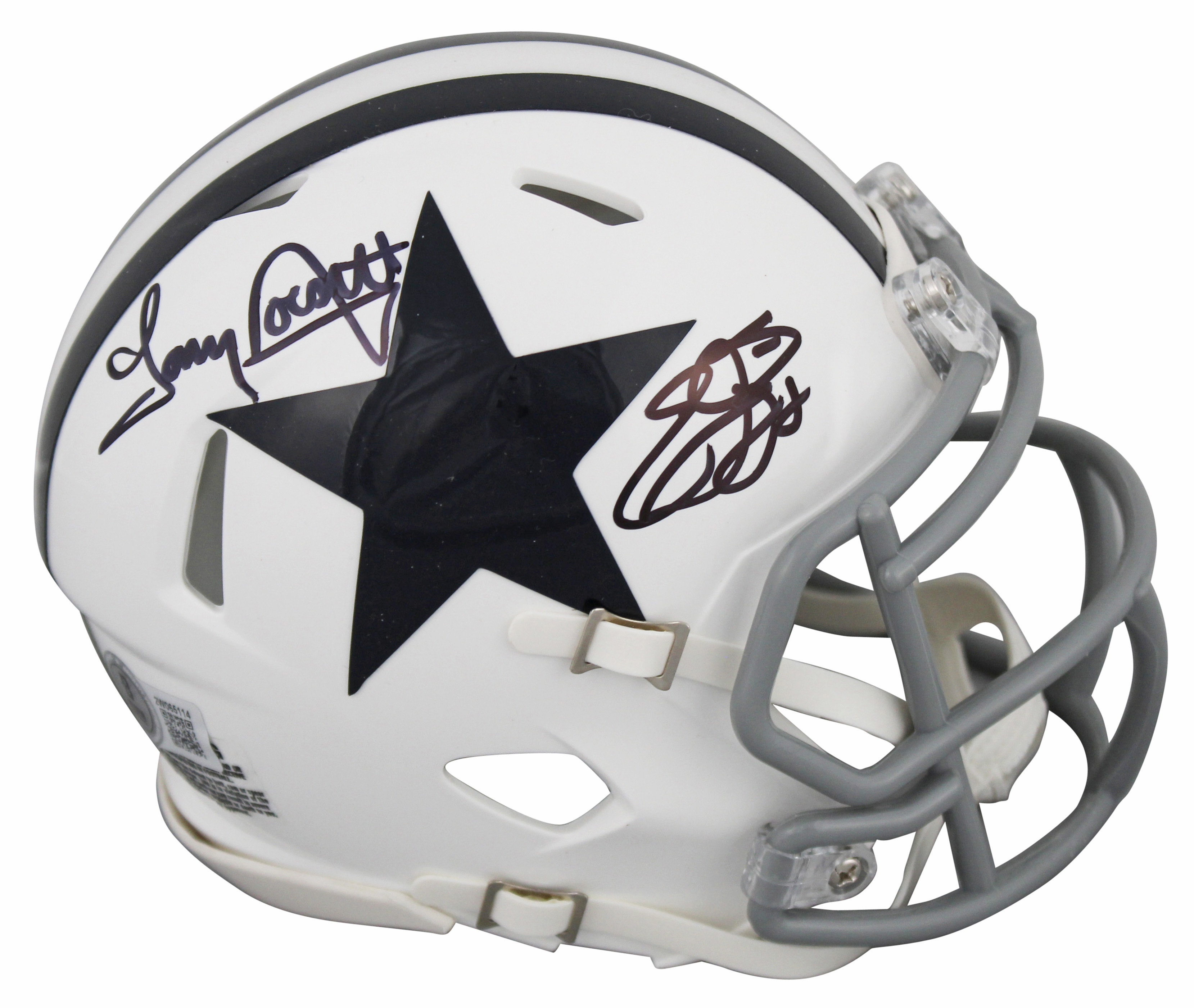 This Autographed 1960-63 Throwback Speed Mini Helmet has been Personally Signed by Emmitt Smith & Tony Dorsett of the Dallas Cowboys. This item is 100% Authentic to include a hologram by Beckett Authentication Services. This item will come with an affixed Beckett Authentication Services (BAS) authentication sticker, which includes a scannable QR code to verify authenticity. Please note that Beckett no longer provides serial-numbered COA cards, and the attached BAS sticker will serve as the complete authentication for this item. This is a BAS Witnessed Protection Program item which means a Beckett Authentication Service representative was present when this item was being signed. We conducted an autograph signing with Emmitt Smith & Tony Dorsett where multiples of the same item were signed. While the photographs are representative of this item, the size, placement and strength of the signature may vary. Each item is hand signed, therefore, each autograph is unique. This item can be verified through BAS Witnessed.