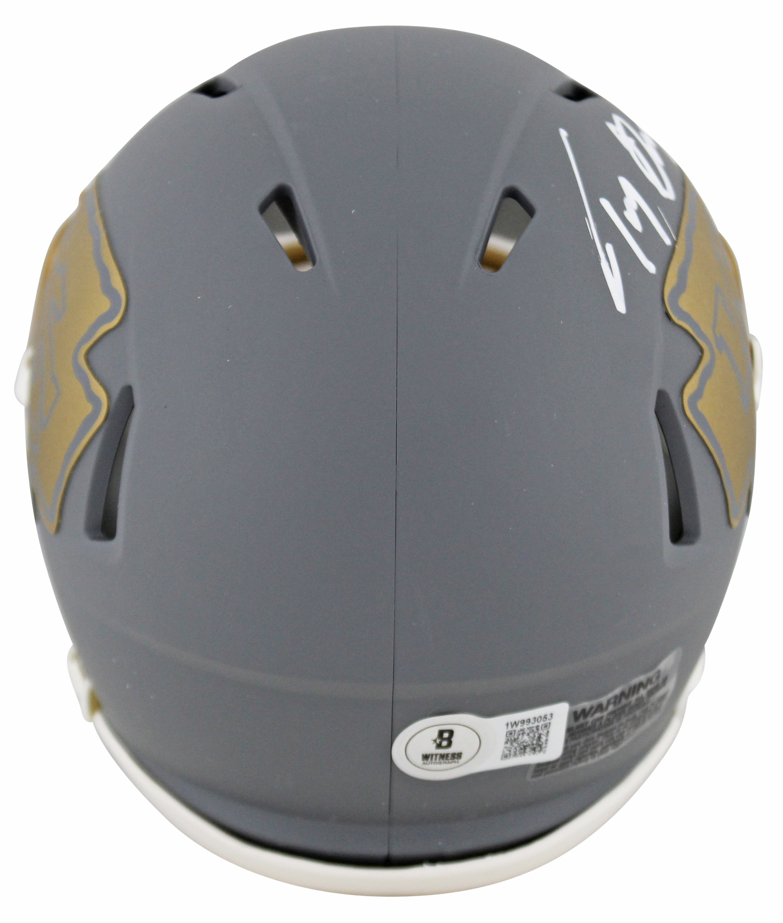 This Autographed Alternate Slate Speed Mini Helmet has been Personally Signed by Tony Gonzalez of the Kansas City Chiefs. This item is 100% Authentic to include a hologram by Beckett Authentication Services. This item will come with an affixed Beckett Authentication Services (BAS) authentication sticker, which includes a scannable QR code to verify authenticity. Please note that Beckett no longer provides serial-numbered COA cards, and the attached BAS sticker will serve as the complete authentication for this item. This is a BAS Witnessed Protection Program item which means a Beckett Authentication Service representative was present when this item was being signed. We conducted an autograph signing with Tony Gonzalez where multiples of the same item were signed. While the photographs are representative of this item, the size, placement and strength of the signature may vary. Each item is hand signed, therefore, each autograph is unique. This item can be verified through BAS Witnessed.