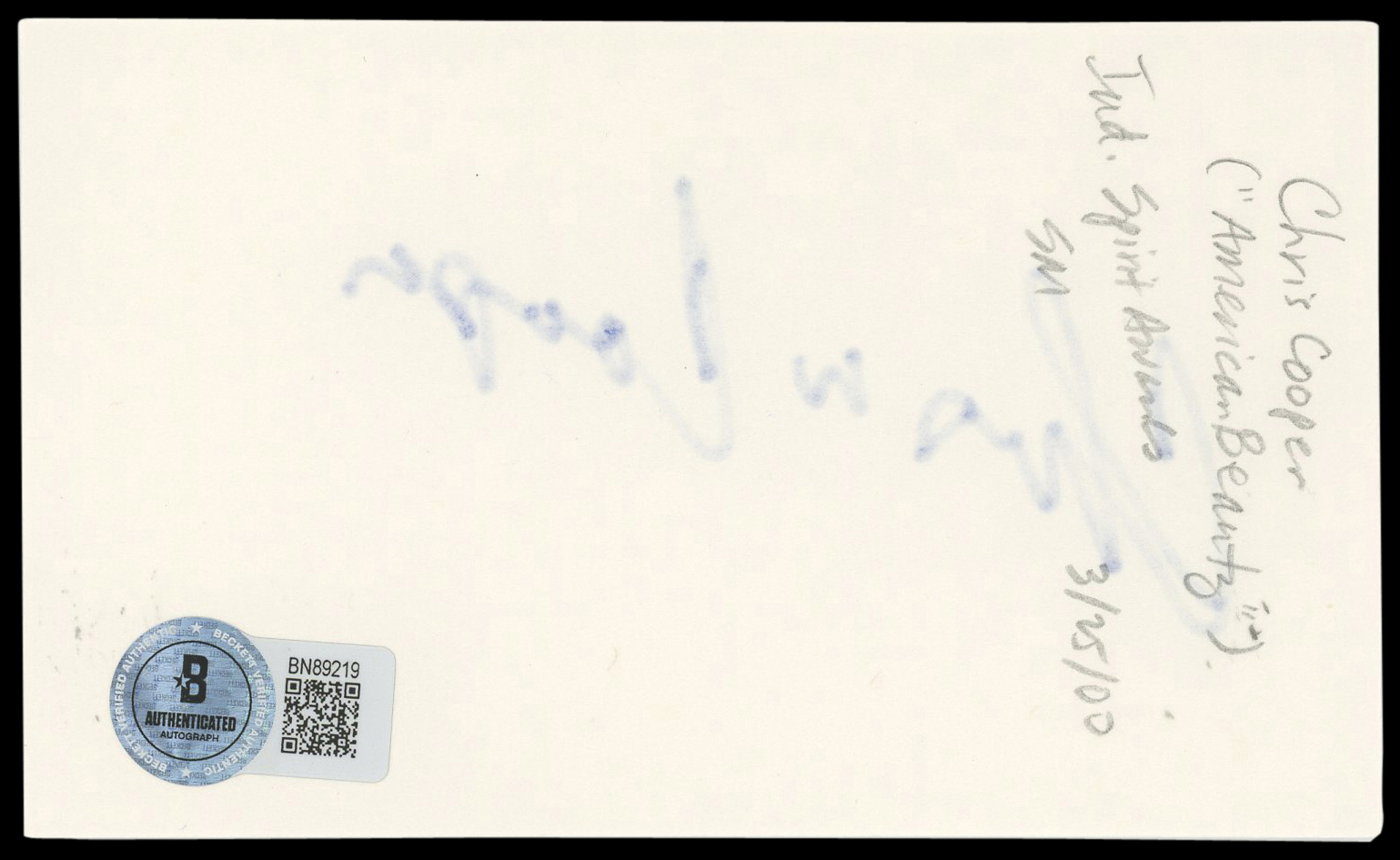This Autographed 3x5 Index Card has been Personally Signed by Chris Cooper of Adaptation. This item is 100% Authentic to include a hologram by Beckett Authentication Services. This item will come with an affixed Beckett Authentication Services (BAS) authentication sticker, which includes a scannable QR code to verify authenticity. Please note that Beckett no longer provides serial-numbered COA cards, and the attached BAS sticker will serve as the complete authentication for this item. The authenticity can be verified on Beckett Authentication Services website.