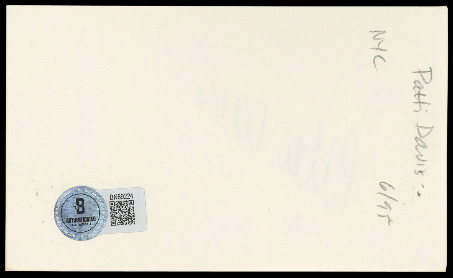 This Autographed 3x5 Index Card has been Personally Signed by Patti Davis of Tango & Cash. This item is 100% Authentic to include a hologram by Beckett Authentication Services. This item will come with an affixed Beckett Authentication Services (BAS) authentication sticker, which includes a scannable QR code to verify authenticity. Please note that Beckett no longer provides serial-numbered COA cards, and the attached BAS sticker will serve as the complete authentication for this item. The authenticity can be verified on Beckett Authentication Services website.