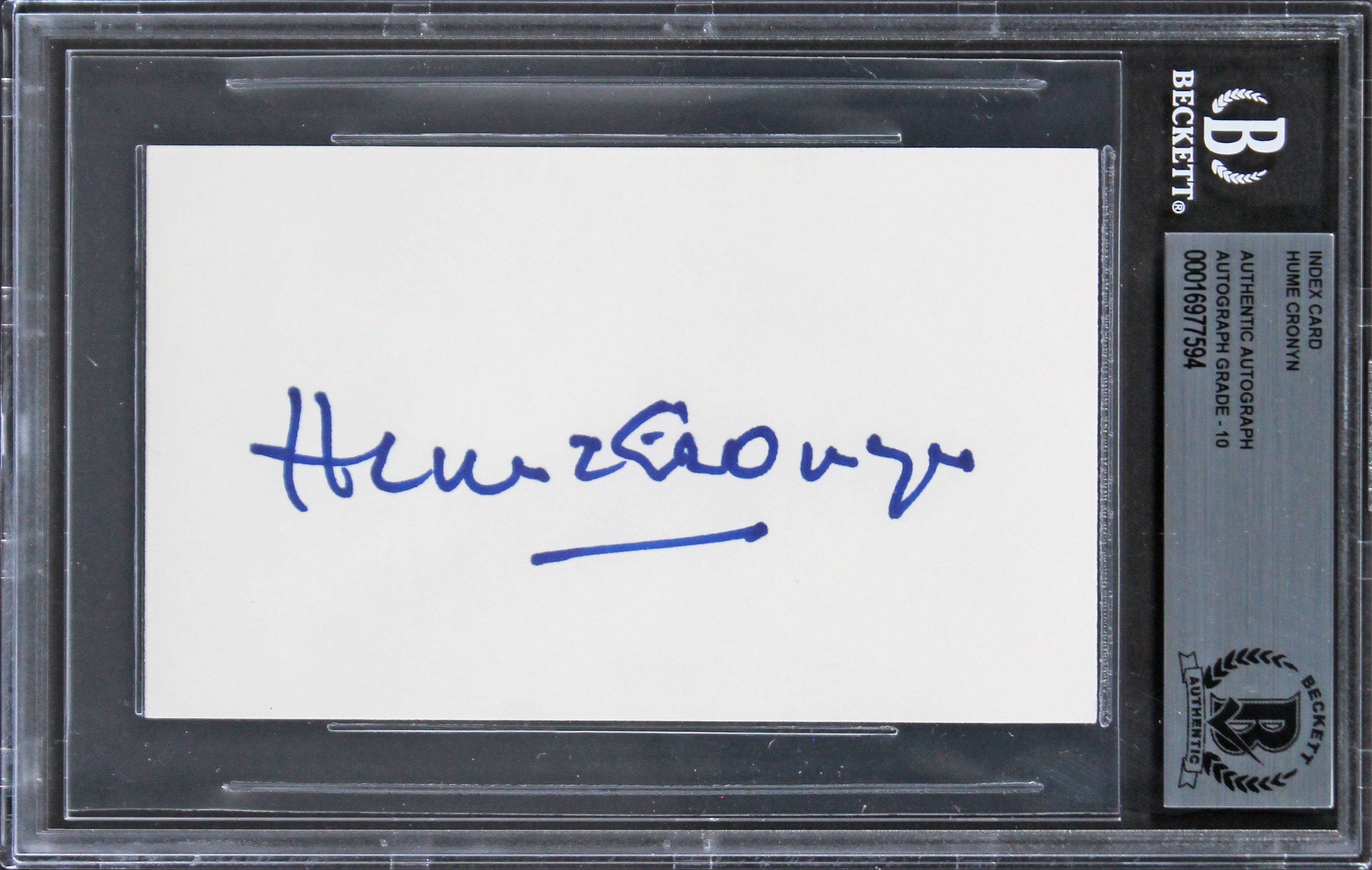 The authenticity can be verified on Beckett Authentication Services website. This Autographed Auto Graded Gem Mint 10! 3x5 Index Card has been Personally Signed by Hume Cronyn of The Seventh Cross. This item is 100% Authentic, it comes slabbed and authenticated by Beckett Authentication Services. The authenticity can be verified on Beckett Authentication Services website.