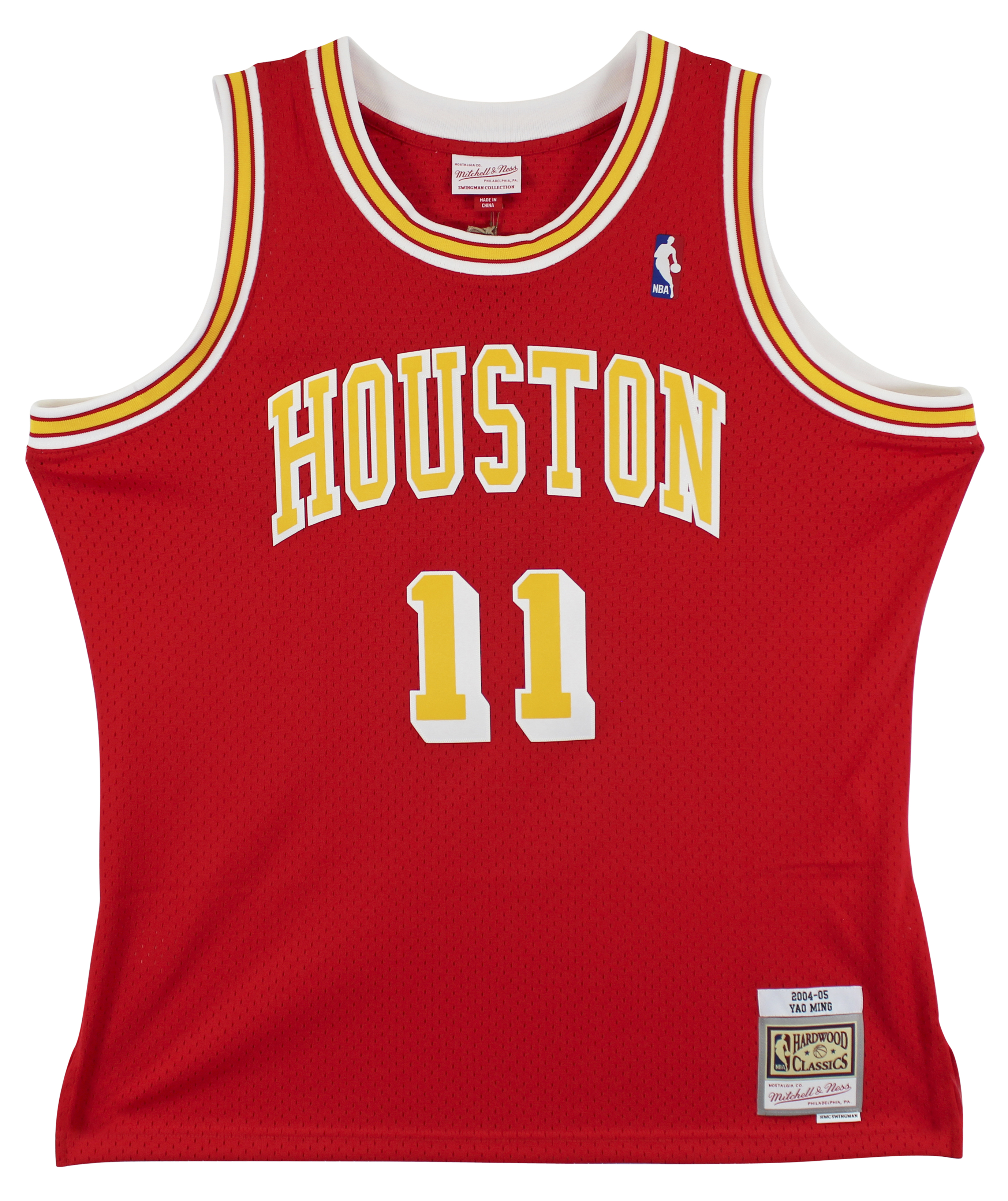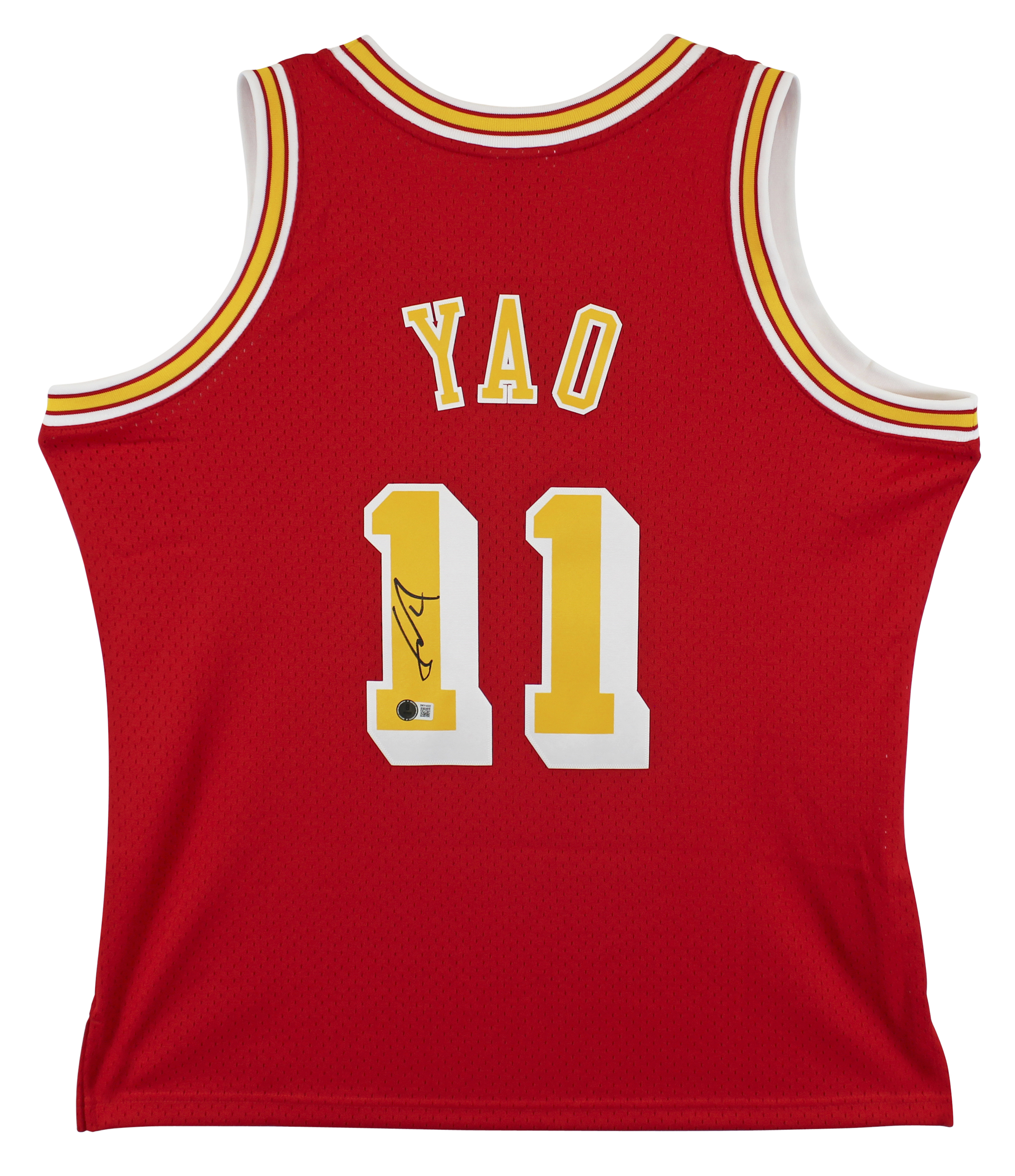 This Autographed Red Mitchell & Ness 2004-05 Hardwood Classics Swingman Jersey has been Personally Signed by Yao Ming of the Houston Rockets. This item is 100% Authentic to include a hologram by Beckett Authentication Services. This item will come with an affixed Beckett Authentication Services (BAS) authentication sticker, which includes a scannable QR code to verify authenticity. Please note that Beckett no longer provides serial-numbered COA cards, and the attached BAS sticker will serve as the complete authentication for this item. This is a BAS Witnessed Protection Program item which means a Beckett Authentication Service representative was present when this item was being signed. We conducted an autograph signing with Yao Ming where multiples of the same item were signed. While the photographs are representative of this item, the size, placement and strength of the signature may vary. Each item is hand signed, therefore, each autograph is unique. This item can be verified through BAS Witnessed. This is a X-Large sized Jersey.