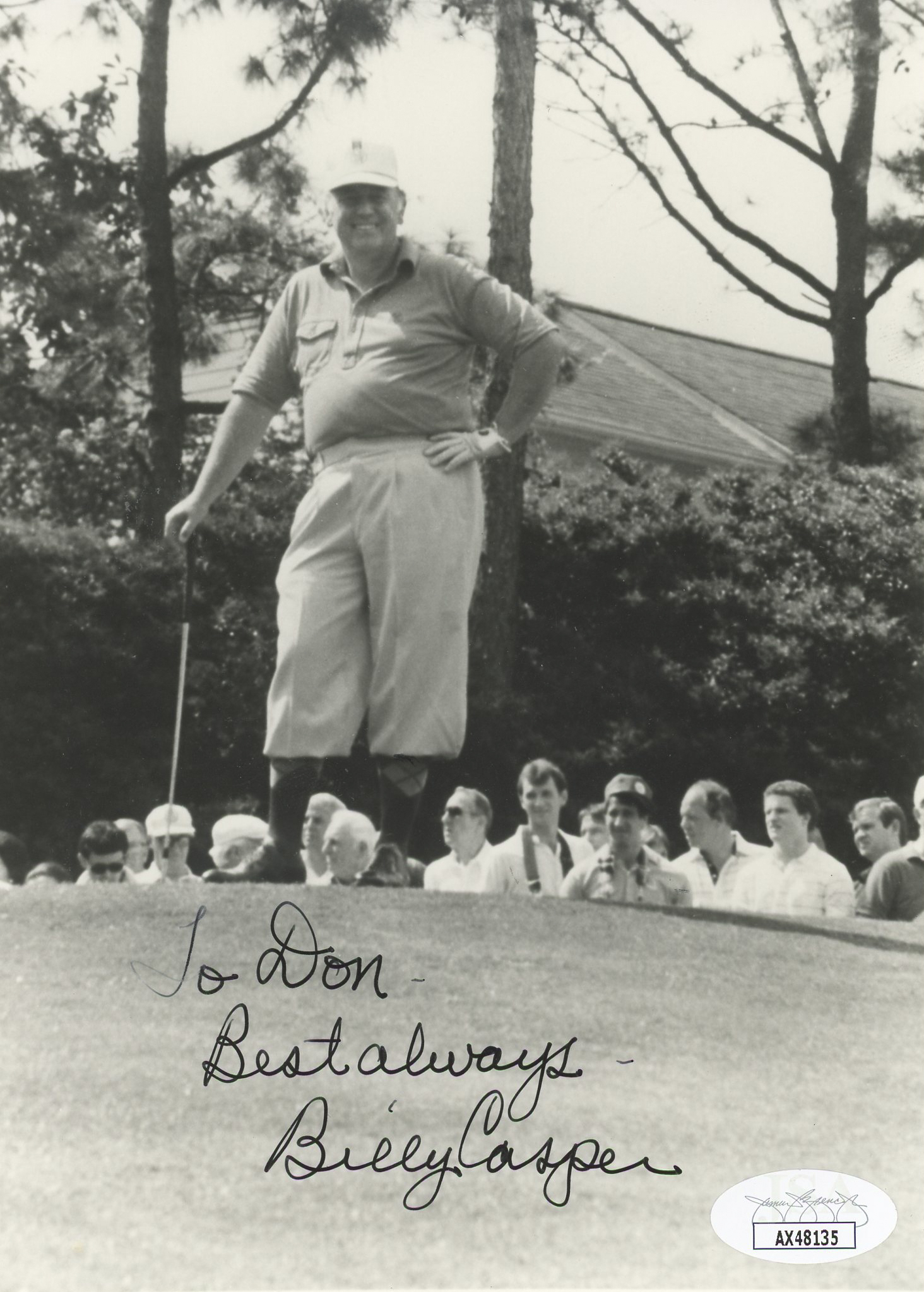 This Autographed 5x7 Photo with the inscription of "To Don, Best Always" has been Personally Signed by Billy Casper. This item is 100% Authentic to include a Certificate of Authenticity (COA) / hologram by JSA. The authenticity can be verified on JSA website.