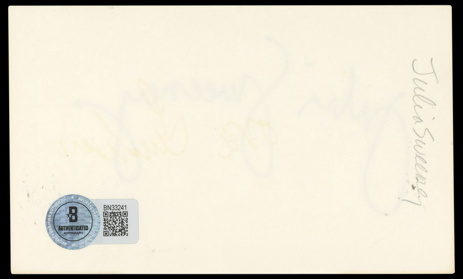 The authenticity can be verified on Beckett Authentication Services website. This Autographed 3x5 Index Card has been Personally Signed by Julia Sweeney of Saturday Night Live. This item is 100% Authentic to include a hologram by Beckett Authentication Services. This item will come with an affixed Beckett Authentication Services (BAS) authentication sticker, which includes a scannable QR code to verify authenticity. Please note that Beckett no longer provides serial-numbered COA cards, and the attached BAS sticker will serve as the complete authentication for this item. The authenticity can be verified on Beckett Authentication Services website.