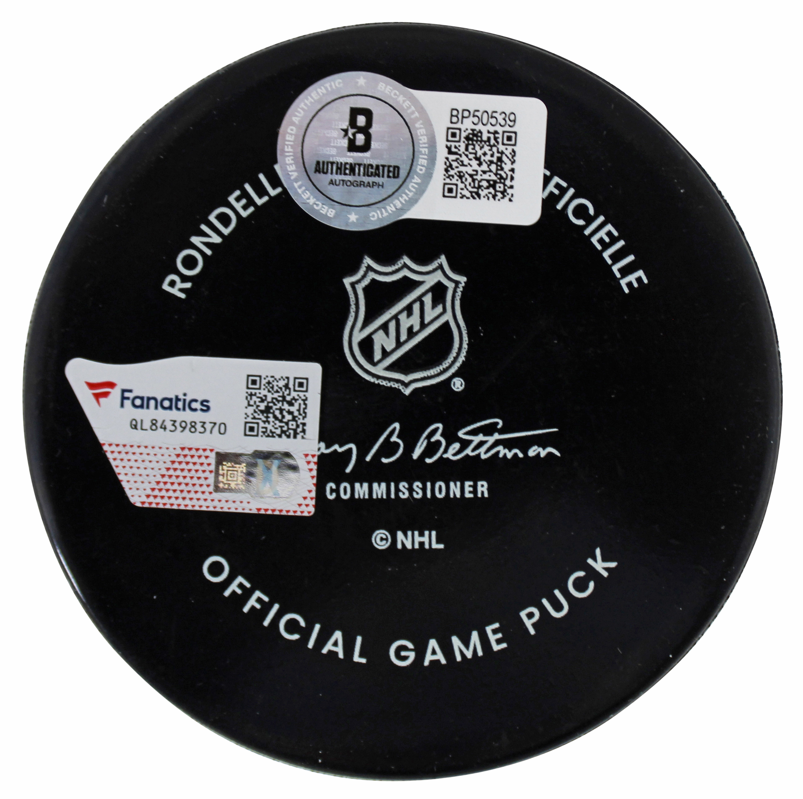 This Autographed Official Game Hockey Puck with the inscription of "2017 Calder" has been Personally Signed by Auston Matthews of the Toronto Maple Leafs. This item is 100% Authentic to include a hologram by Beckett Authentication Services. This item will come with an affixed Beckett Authentication Services (BAS) authentication sticker, which includes a scannable QR code to verify authenticity. Please note that Beckett no longer provides serial-numbered COA cards, and the attached BAS sticker will serve as the complete authentication for this item. We conducted an autograph signing with Auston Matthews where multiples of the same item were signed. While the photographs are representative of this item, the size, placement and strength of the signature may vary. Each item is hand signed, therefore, each autograph is unique. This item can be verified through BAS. These pucks were also authenticated by Fanatics, however, Fanatics did not enter them into their database and will not show up, but will have its Fanatics hologram. We had these pucks authenticated by Beckett afterwards.