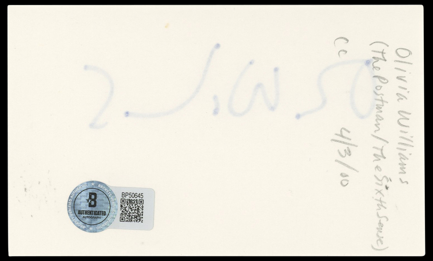 The authenticity can be verified on Beckett Authentication Services website. This Autographed 3x5 Index Card has been Personally Signed by Olivia Williams of The Sixth Sense. This item is 100% Authentic to include a hologram by Beckett Authentication Services. This item will come with an affixed Beckett Authentication Services (BAS) authentication sticker, which includes a scannable QR code to verify authenticity. Please note that Beckett no longer provides serial-numbered COA cards, and the attached BAS sticker will serve as the complete authentication for this item. The authenticity can be verified on Beckett Authentication Services website.
