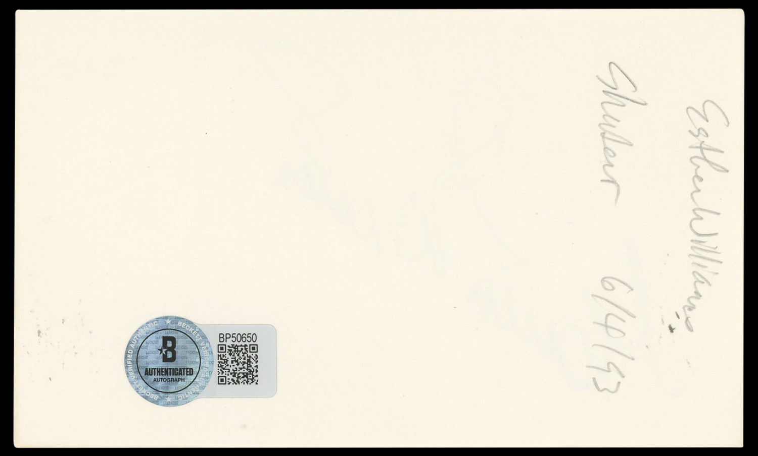 Esther Williams Million Dollar Mermaid Signed 3x5 Index Card BAS #BP50650