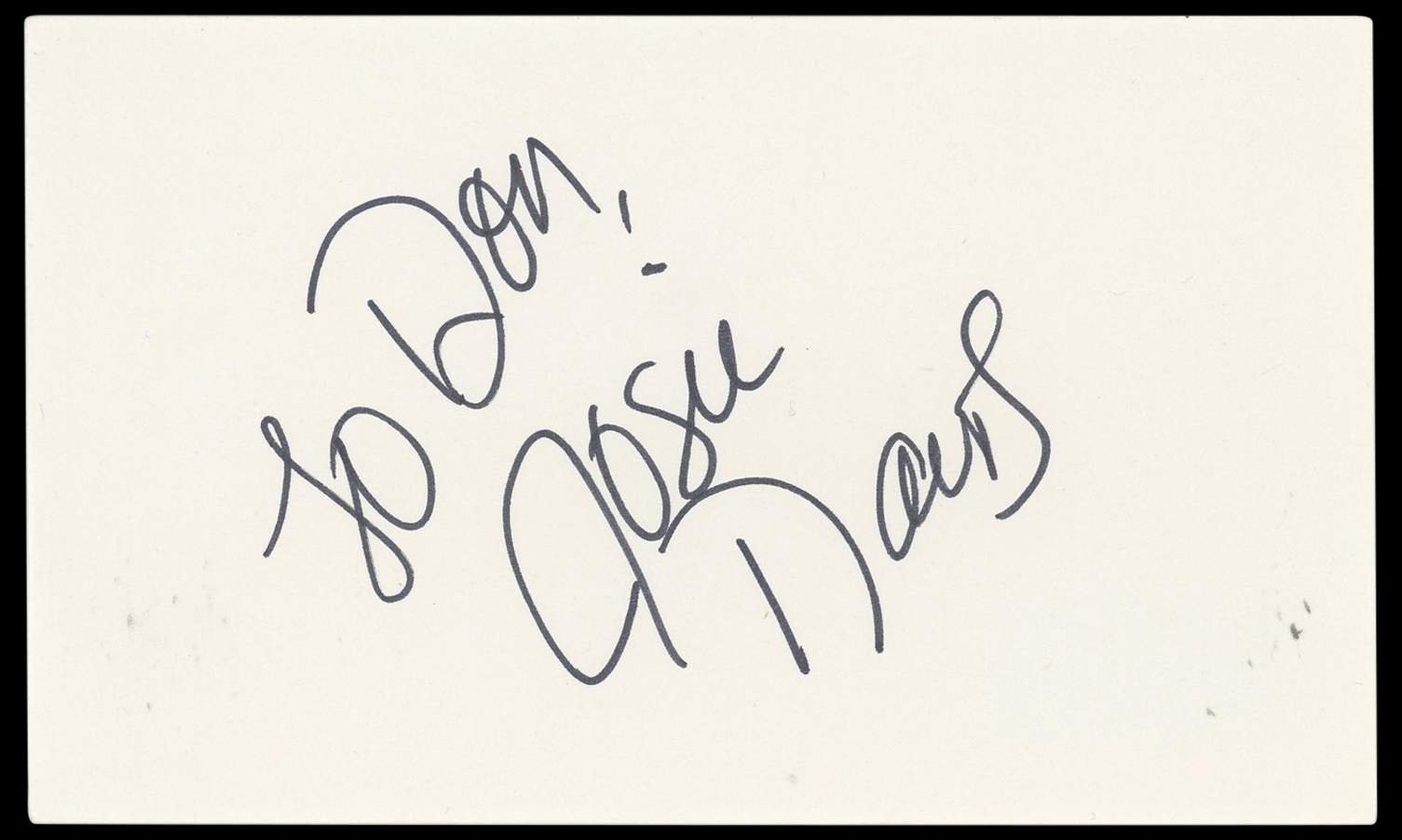 The authenticity can be verified on Beckett Authentication Services website. This Autographed 3x5 Index Card with the inscription of "To Don" has been Personally Signed by Josie Davis of Charles in Charge. This item is 100% Authentic to include a hologram by Beckett Authentication Services. This item will come with an affixed Beckett Authentication Services (BAS) authentication sticker, which includes a scannable QR code to verify authenticity. Please note that Beckett no longer provides serial-numbered COA cards, and the attached BAS sticker will serve as the complete authentication for this item. The authenticity can be verified on Beckett Authentication Services website.
