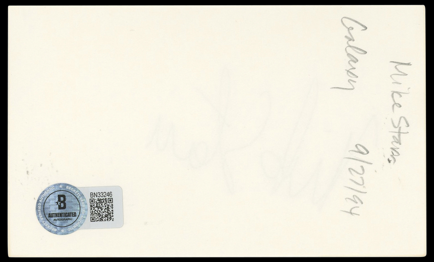 The authenticity can be verified on Beckett Authentication Services website. This Autographed 3x5 Index Card has been Personally Signed by Mike Starr of The Young and the Restless. This item is 100% Authentic to include a hologram by Beckett Authentication Services. This item will come with an affixed Beckett Authentication Services (BAS) authentication sticker, which includes a scannable QR code to verify authenticity. Please note that Beckett no longer provides serial-numbered COA cards, and the attached BAS sticker will serve as the complete authentication for this item. The authenticity can be verified on Beckett Authentication Services website.