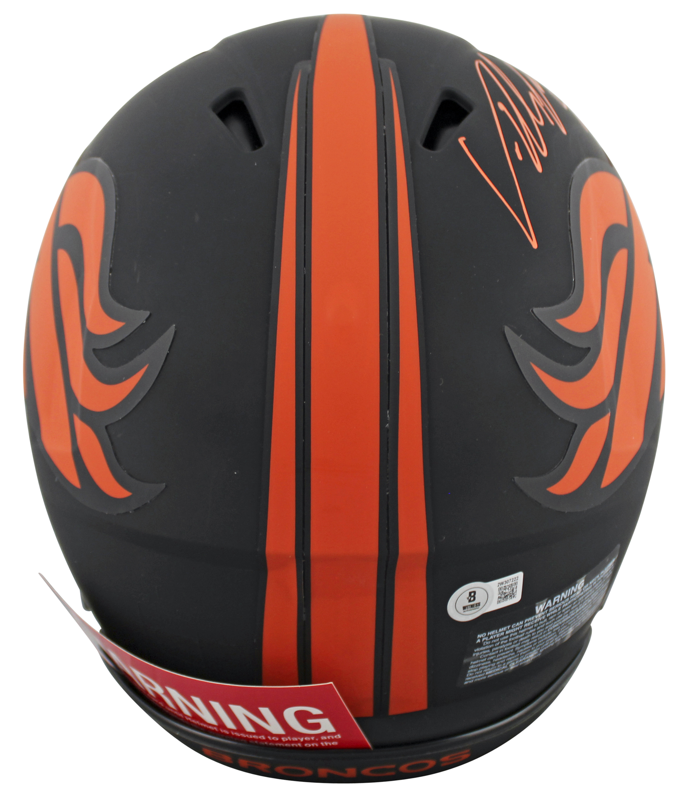 This Autographed Alternate Eclipse Riddell Full Size Speed Proline Helmet W/ Uv Mirrored Back Acrylic Display Case has been Personally Signed by Von Miller of the Denver Broncos. This item is 100% Authentic to include a hologram by Beckett Authentication Services. This item will come with an affixed Beckett Authentication Services (BAS) authentication sticker, which includes a scannable QR code to verify authenticity. Please note that Beckett no longer provides serial-numbered COA cards, and the attached BAS sticker will serve as the complete authentication for this item. This is a BAS Witnessed Protection Program item which means a Beckett Authentication Service representative was present when this item was being signed. We conducted an autograph signing with Von Miller where multiples of the same item were signed. While the photographs are representative of this item, the size, placement and strength of the signature may vary. Each item is hand signed, therefore, each autograph is unique. This item can be verified through BAS Witnessed.