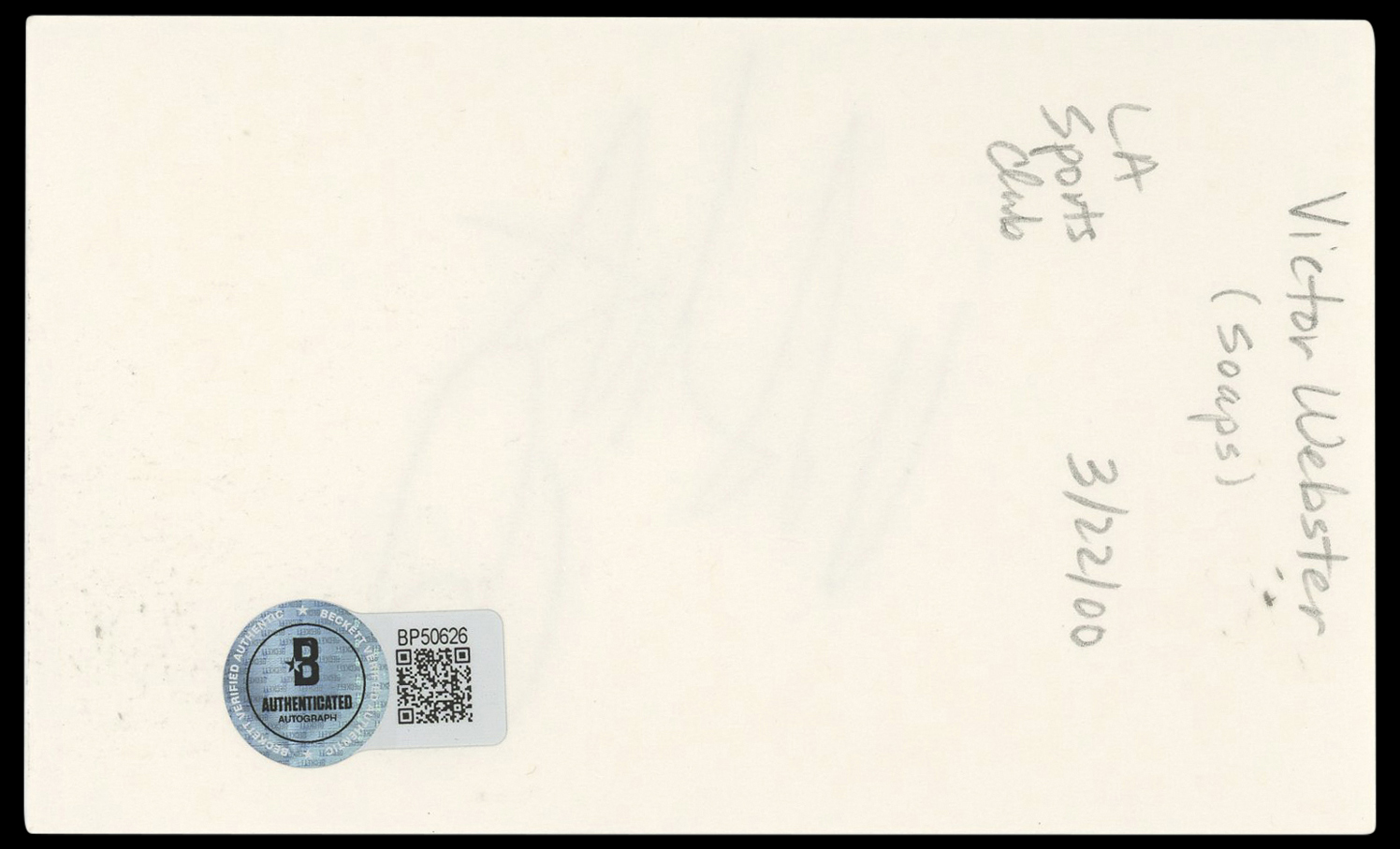 The authenticity can be verified on Beckett Authentication Services website. This Autographed 3x5 Index Card has been Personally Signed by Victor Webster of Days of Our Lives. This item is 100% Authentic to include a hologram by Beckett Authentication Services. This item will come with an affixed Beckett Authentication Services (BAS) authentication sticker, which includes a scannable QR code to verify authenticity. Please note that Beckett no longer provides serial-numbered COA cards, and the attached BAS sticker will serve as the complete authentication for this item. The authenticity can be verified on Beckett Authentication Services website.