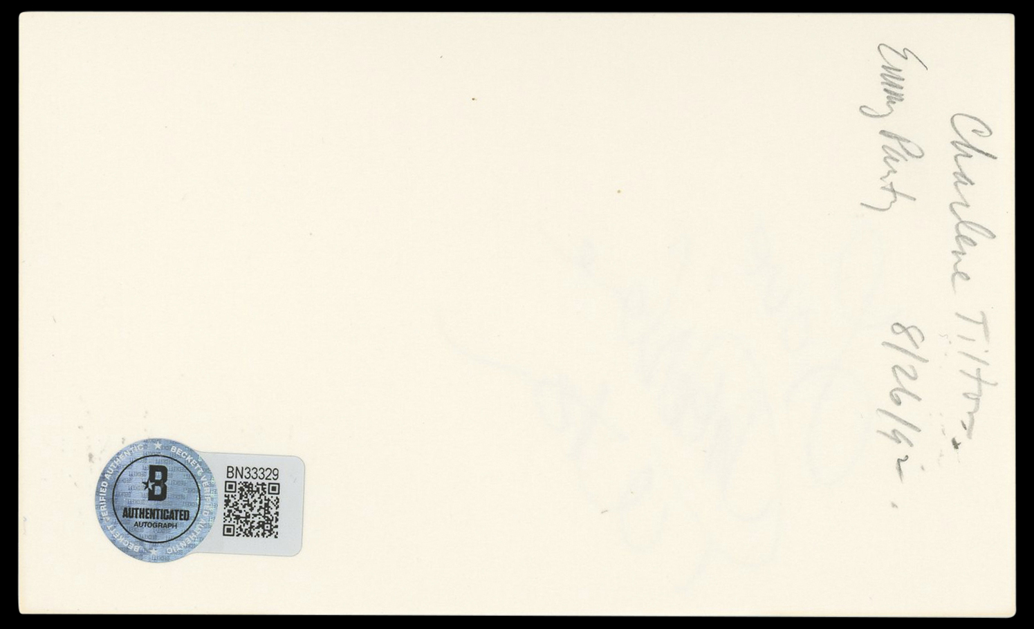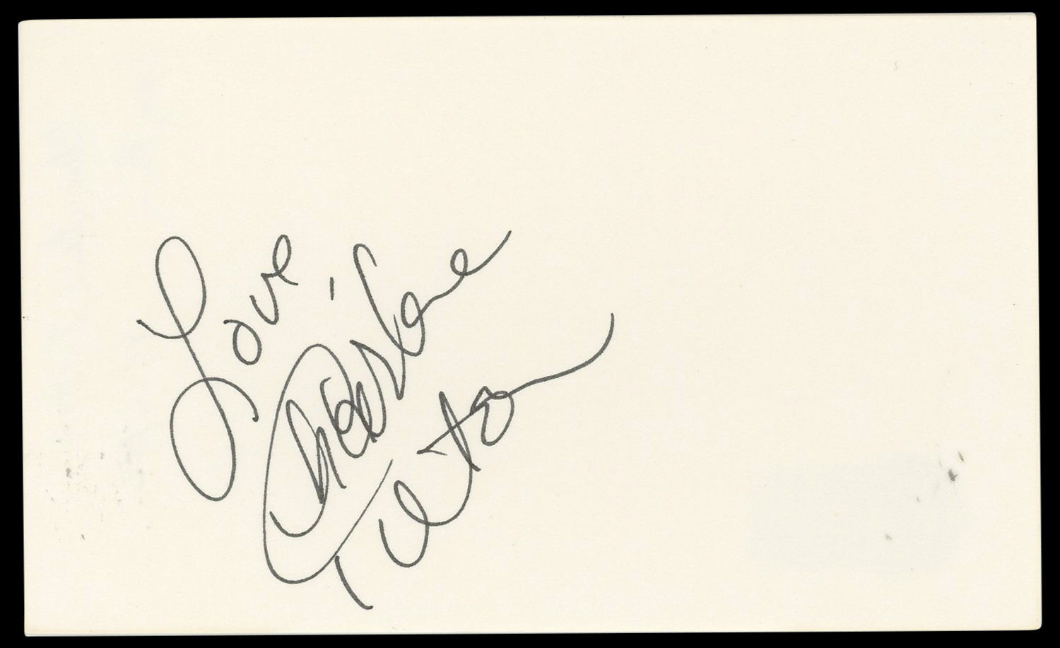 The authenticity can be verified on Beckett Authentication Services website. This Autographed 3x5 Index Card with the inscription of "Love" has been Personally Signed by Charlene Tilton of Dallas. This item is 100% Authentic to include a hologram by Beckett Authentication Services. This item will come with an affixed Beckett Authentication Services (BAS) authentication sticker, which includes a scannable QR code to verify authenticity. Please note that Beckett no longer provides serial-numbered COA cards, and the attached BAS sticker will serve as the complete authentication for this item. The authenticity can be verified on Beckett Authentication Services website.