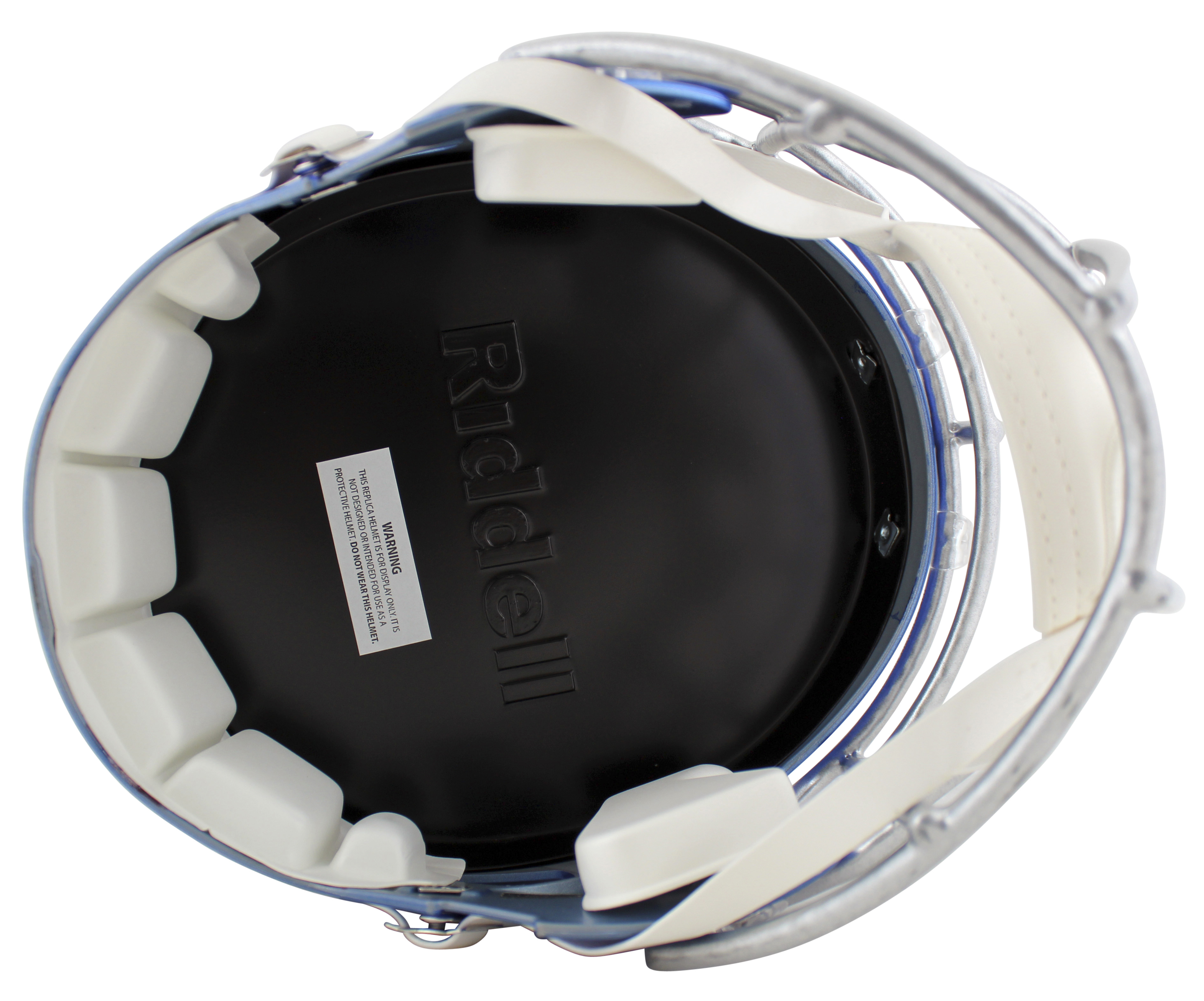 This Autographed Alternate Flash Riddell Full Size Speed Rep Helmet W/ Uv Mirrored Back Acrylic Display Case has been Personally Signed by Emmitt Smith of the Dallas Cowboys. This item is 100% Authentic to include a hologram by Beckett Authentication Services. This item will come with an affixed Beckett Authentication Services (BAS) authentication sticker, which includes a scannable QR code to verify authenticity. Please note that Beckett no longer provides serial-numbered COA cards, and the attached BAS sticker will serve as the complete authentication for this item. This is a BAS Witnessed Protection Program item which means a Beckett Authentication Service representative was present when this item was being signed. We conducted an autograph signing with Emmitt Smith where multiples of the same item were signed. While the photographs are representative of this item, the size, placement and strength of the signature may vary. Each item is hand signed, therefore, each autograph is unique. This item can be verified through BAS Witnessed.