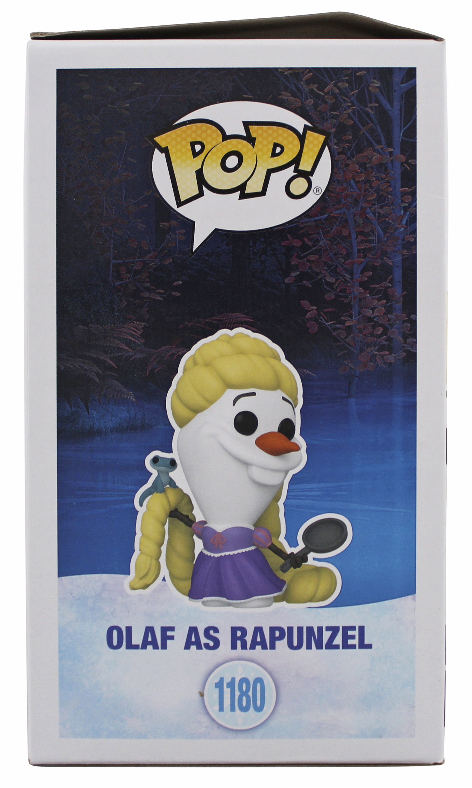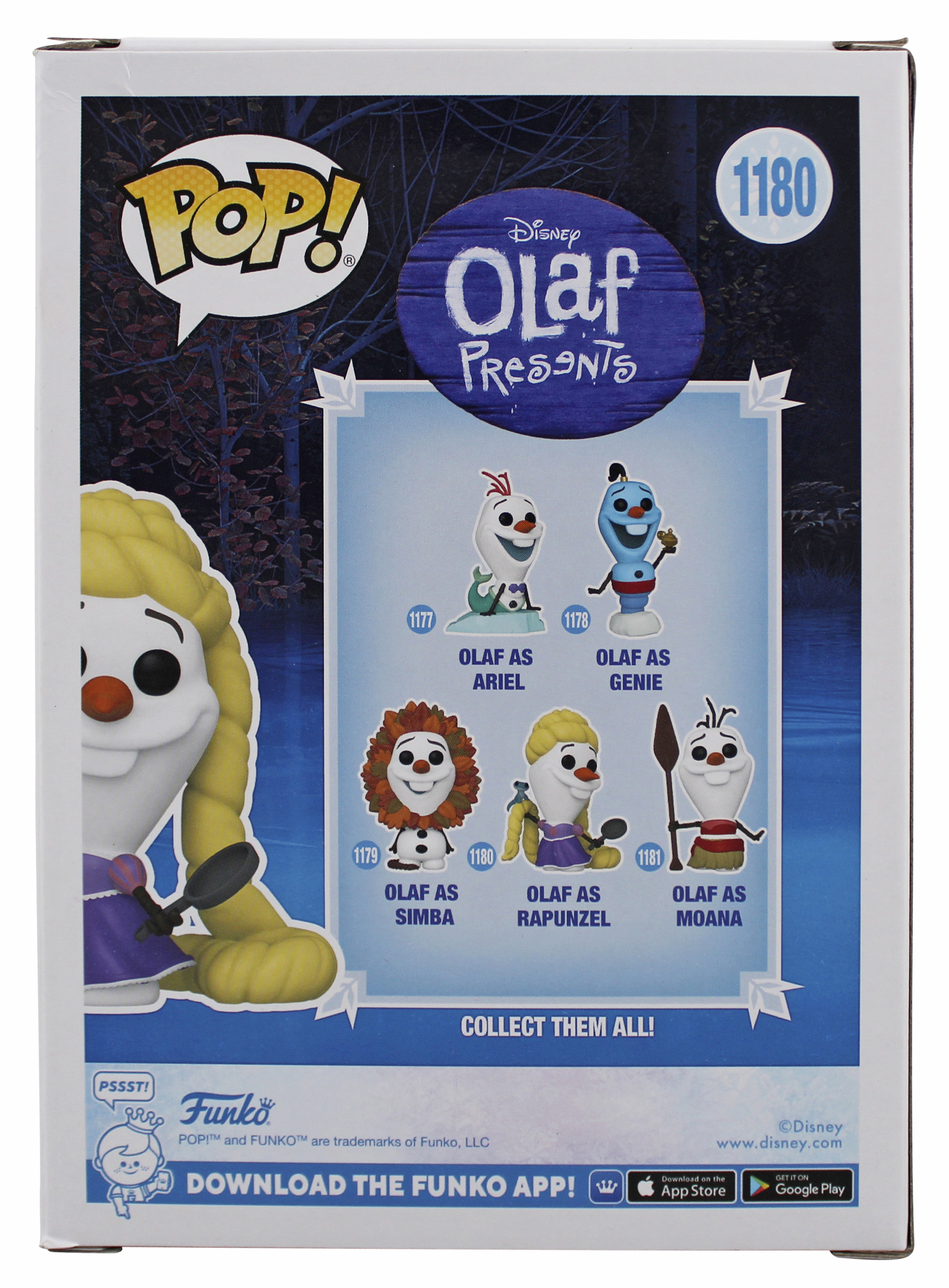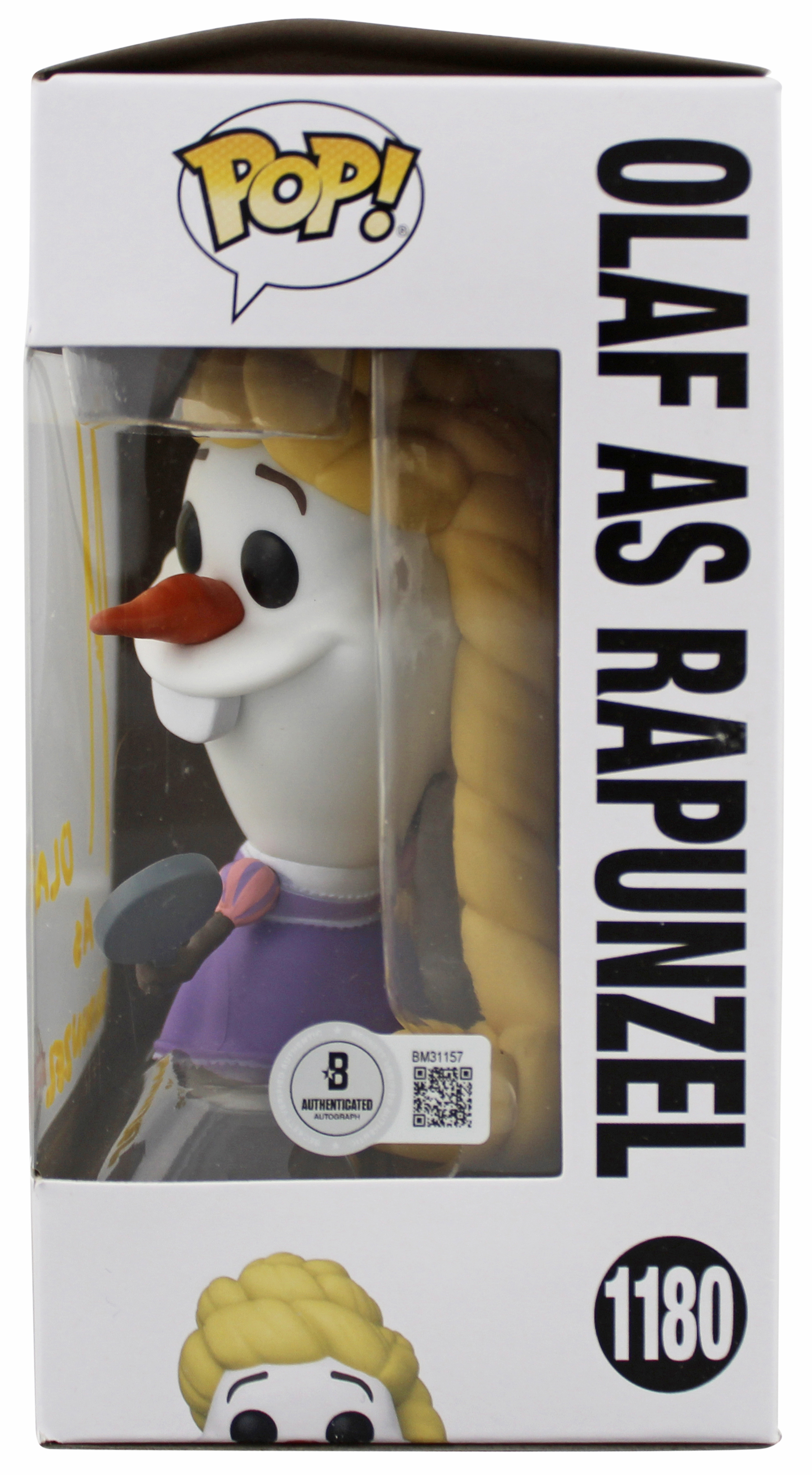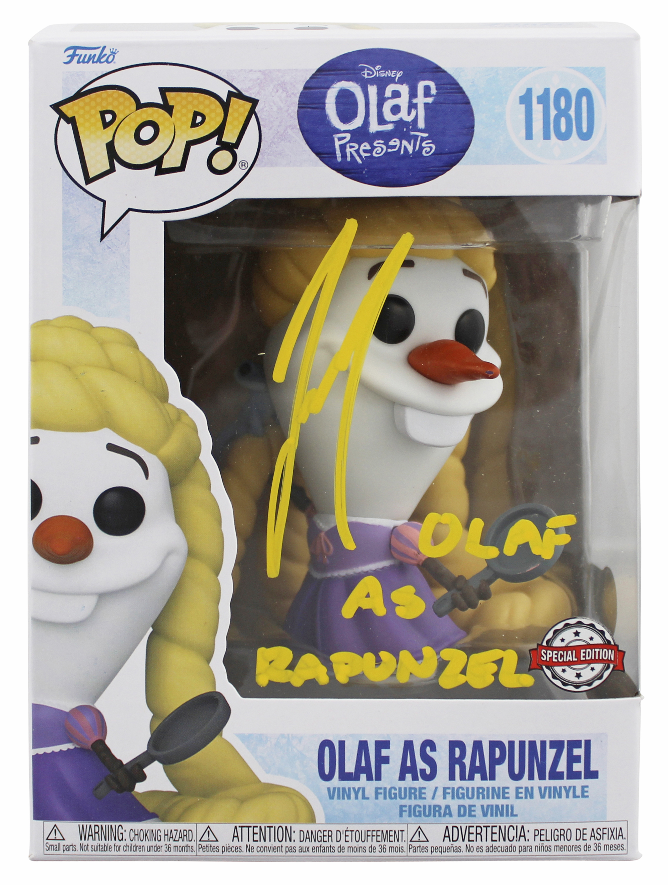 This Autographed #1180 Olaf as Rapunzel Funko Pop Vinyl Figure with the inscription of "Olaf as Rapunzel" has been Personally Signed by Josh Gad of Frozen. This item is 100% Authentic to include a hologram by Beckett Authentication Services. This item will come with an affixed Beckett Authentication Services (BAS) authentication sticker, which includes a scannable QR code to verify authenticity. Please note that Beckett no longer provides serial-numbered COA cards, and the attached BAS sticker will serve as the complete authentication for this item. We have multiples of this same item. While the photographs are representative of this item, the size, placement and strength of the signature may vary. Each item is hand signed, therefore, each autograph is unique. This item will ship in a Pop! Protector, please refer to the photos for condition of the item prior to purchase, these are in good condition but would not be considered mint.