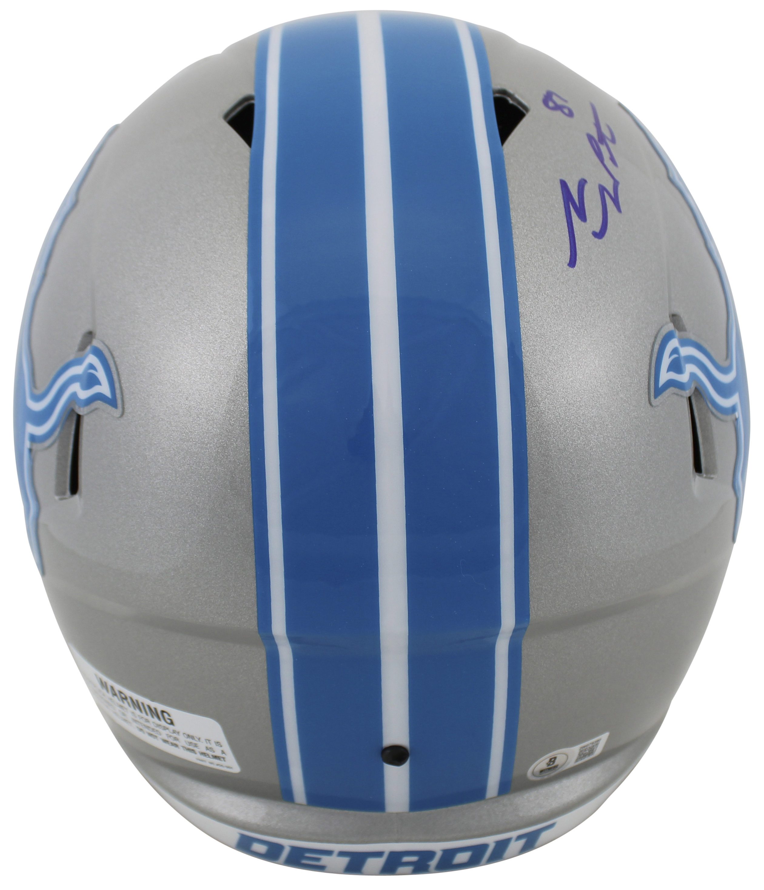 This Autographed Riddell Full Size Speed Rep Helmet has been Personally Signed by Sam LaPorta of the Detroit Lions. This item is 100% Authentic to include a hologram by Beckett Authentication Services. This item will come with an affixed Beckett Authentication Services (BAS) authentication sticker, which includes a scannable QR code to verify authenticity. Please note that Beckett no longer provides serial-numbered COA cards, and the attached BAS sticker will serve as the complete authentication for this item. This is a BAS Witnessed Protection Program item which means a Beckett Authentication Service representative was present when this item was being signed. We conducted an autograph signing with Sam LaPorta where multiples of the same item were signed. While the photographs are representative of this item, the size, placement and strength of the signature may vary. Each item is hand signed, therefore, each autograph is unique. This item can be verified through BAS Witnessed.