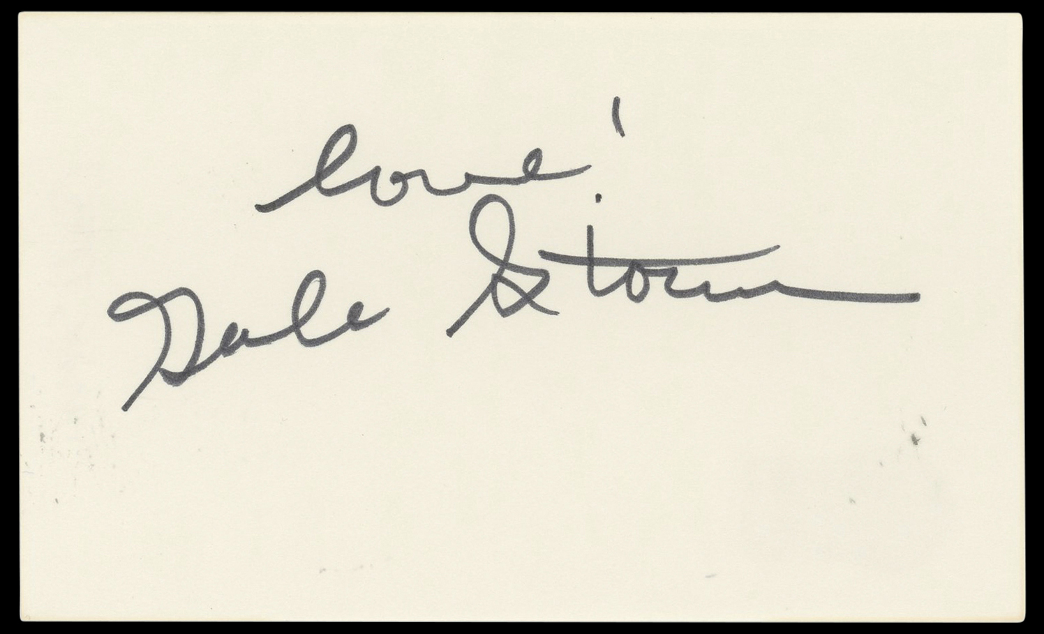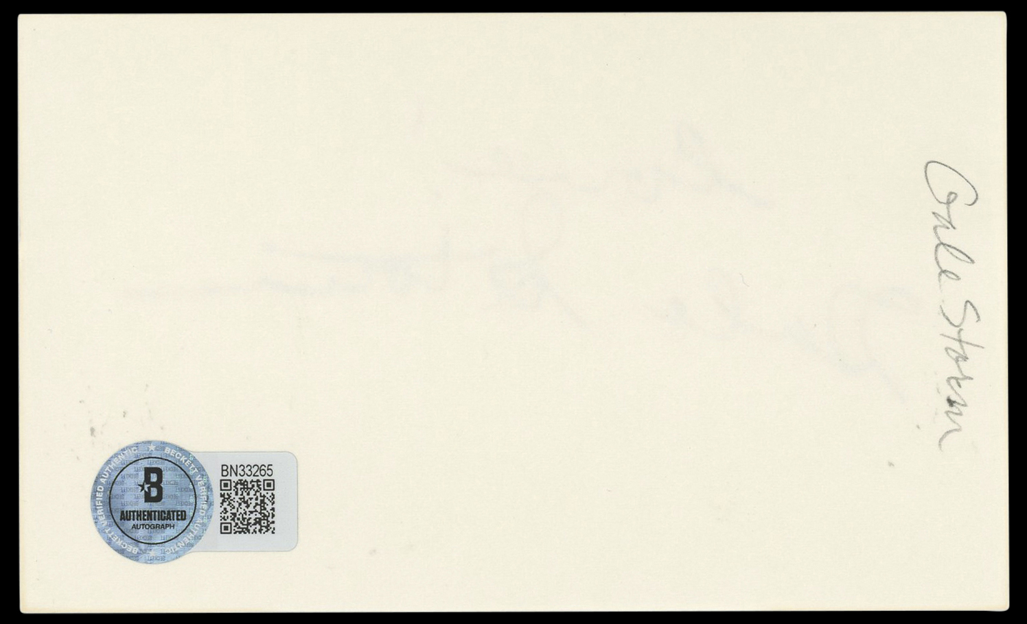 The authenticity can be verified on Beckett Authentication Services website. This Autographed 3x5 Index Card with the inscription of "Love!" has been Personally Signed by Gale Storm of My Little Margie. This item is 100% Authentic to include a hologram by Beckett Authentication Services. This item will come with an affixed Beckett Authentication Services (BAS) authentication sticker, which includes a scannable QR code to verify authenticity. Please note that Beckett no longer provides serial-numbered COA cards, and the attached BAS sticker will serve as the complete authentication for this item. The authenticity can be verified on Beckett Authentication Services website.