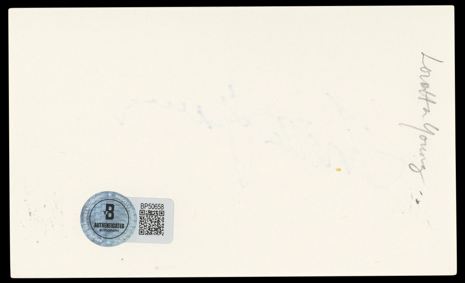 The authenticity can be verified on Beckett Authentication Services website. This Autographed 3x5 Index Card has been Personally Signed by Loretta Young of Call of the Wild. This item is 100% Authentic to include a hologram by Beckett Authentication Services. This item will come with an affixed Beckett Authentication Services (BAS) authentication sticker, which includes a scannable QR code to verify authenticity. Please note that Beckett no longer provides serial-numbered COA cards, and the attached BAS sticker will serve as the complete authentication for this item. The authenticity can be verified on Beckett Authentication Services website.
