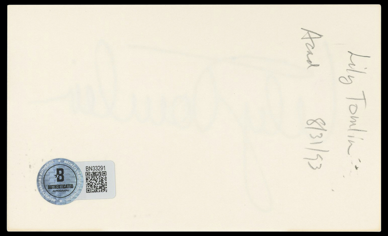 The authenticity can be verified on Beckett Authentication Services website. This Autographed 3x5 Index Card has been Personally Signed by Lily Tomlin of Grace & Frankie. This item is 100% Authentic to include a hologram by Beckett Authentication Services. This item will come with an affixed Beckett Authentication Services (BAS) authentication sticker, which includes a scannable QR code to verify authenticity. Please note that Beckett no longer provides serial-numbered COA cards, and the attached BAS sticker will serve as the complete authentication for this item. The authenticity can be verified on Beckett Authentication Services website.