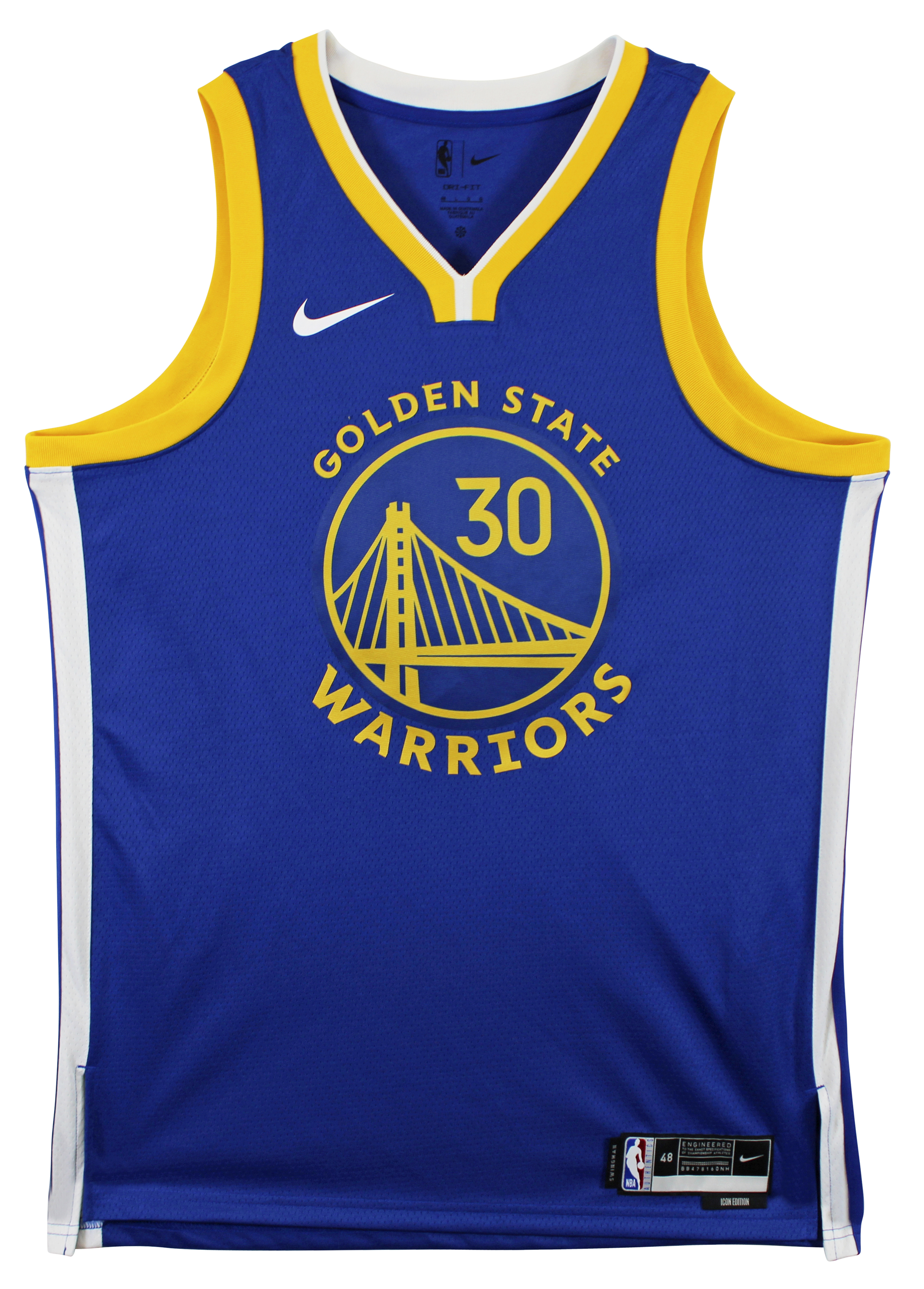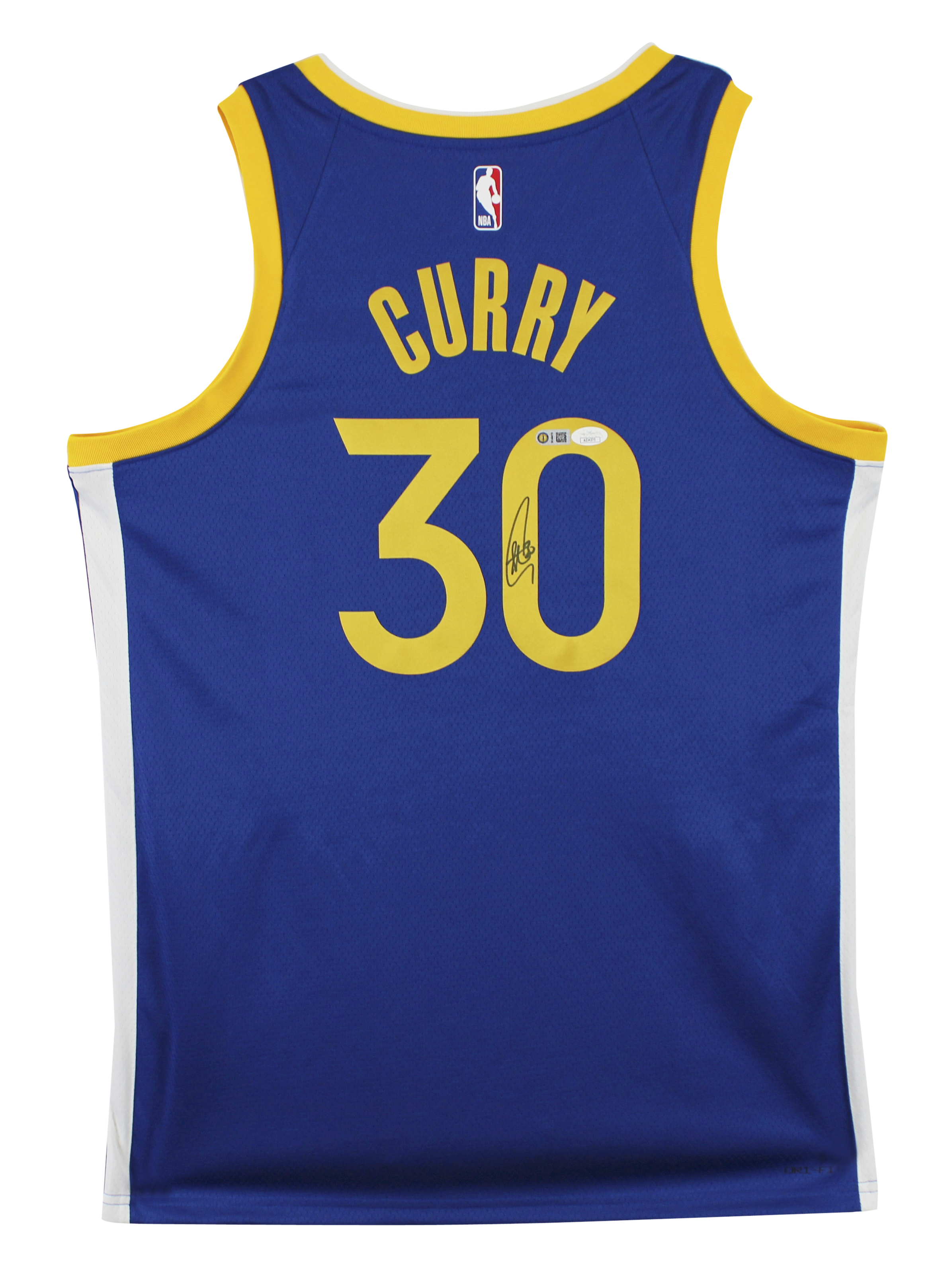 This Autographed Blue Nike Icon Edition Swingman Jersey has been Personally Signed by Stephen Curry of the Golden State Warriors. This item is 100% Authentic to include a Certificate of Authenticity (COA) / hologram by JSA. We have multiples of this same item. While the photographs are representative of this item, the size, placement and strength of the signature may vary. Each item is hand signed, therefore, each autograph is unique. Multiple sizes available. Reach out for availability.