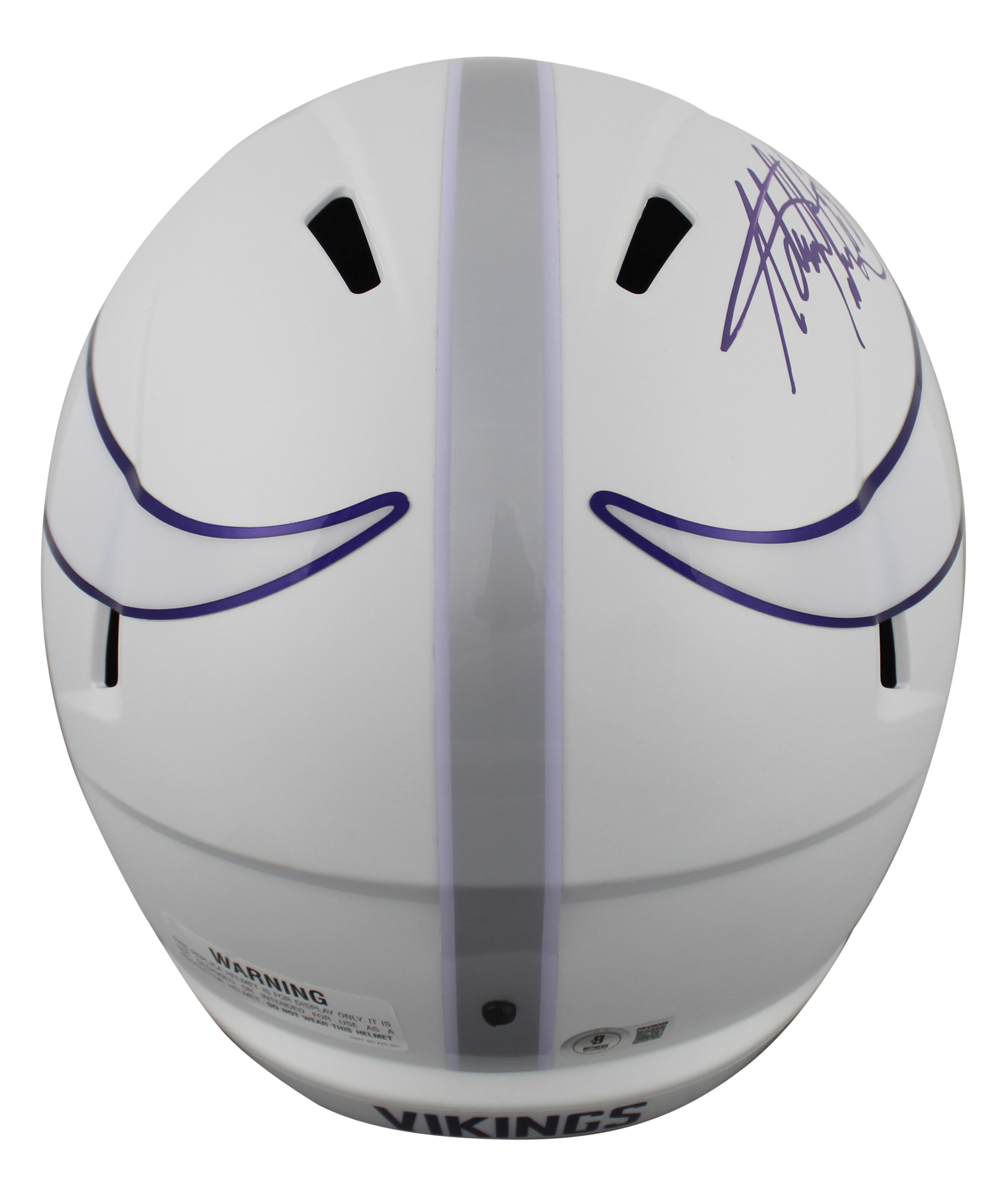 This Autographed 2024 On-Field Alternate Riddell Full Size Speed Rep Helmet has been Personally Signed by Adrian Peterson of the Minnesota Vikings. This item is 100% Authentic to include a hologram by Beckett Authentication Services. This item will come with an affixed Beckett Authentication Services (BAS) authentication sticker, which includes a scannable QR code to verify authenticity. Please note that Beckett no longer provides serial-numbered COA cards, and the attached BAS sticker will serve as the complete authentication for this item. This is a BAS Witnessed Protection Program item which means a Beckett Authentication Service representative was present when this item was being signed. We conducted an autograph signing with Adrian Peterson where multiples of the same item were signed. While the photographs are representative of this item, the size, placement and strength of the signature may vary. Each item is hand signed, therefore, each autograph is unique. This item can be verified through BAS Witnessed.